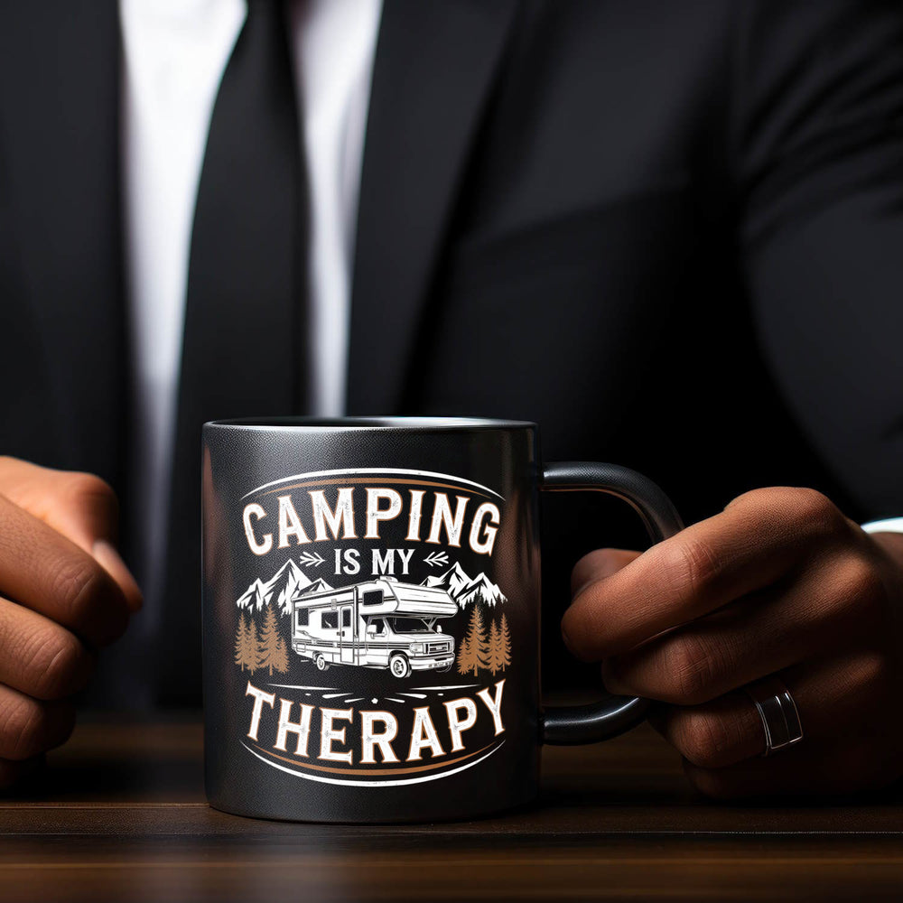 • Also, wann brichst du auf zu deinem nächsten Abenteuer? Mit unserer "Camping is my Therapy" Tasse in der Hand wird jeder Schluck zu deinem persönlichen Kurzurlaub. Ideal als Camping-Geschenk für dich selbst oder andere Wohnmobil-Liebhaber. Lade Freunde ein, genießt die Ruhe und lasst das Abenteuer beginnen!