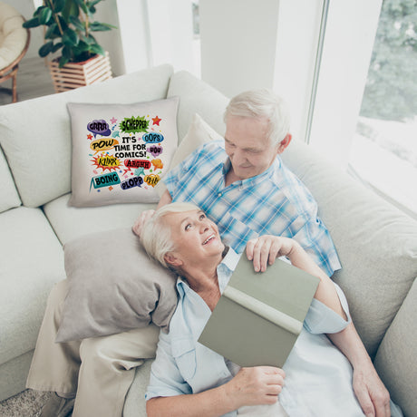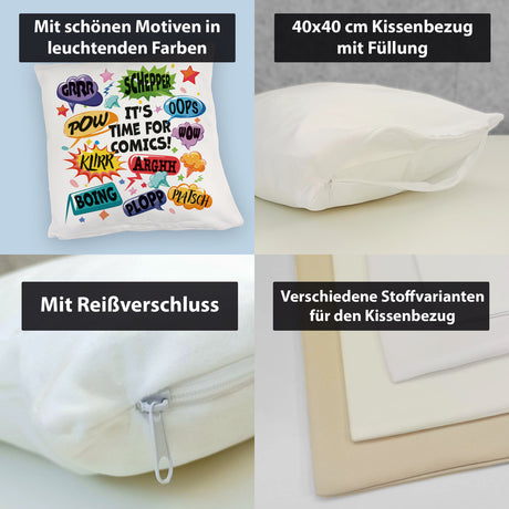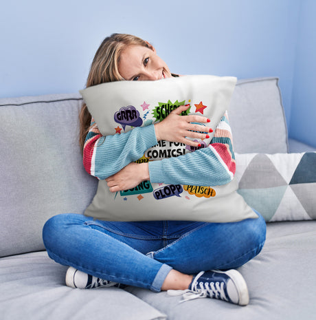 Ab €9,95Grundpreis /Nicht verfügbarAuf LagerComic Kissen mit Spruch: Comics time: POW, WOW, BOING!