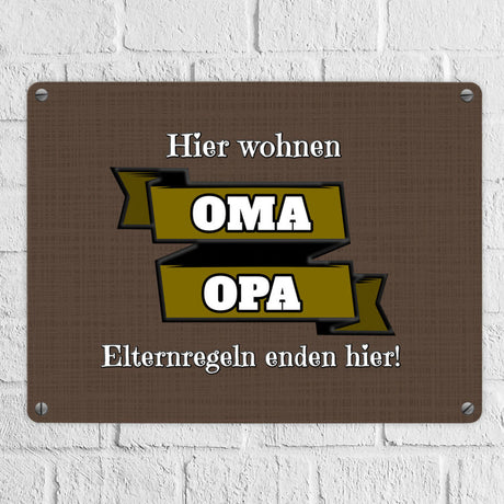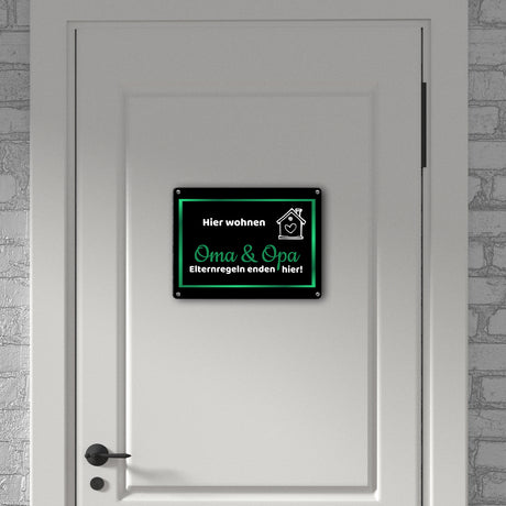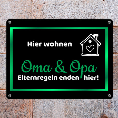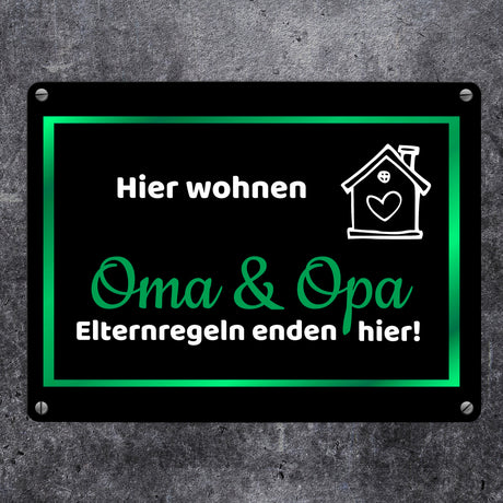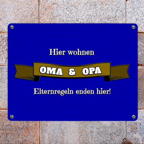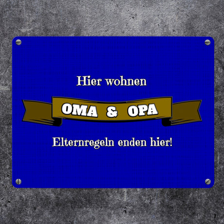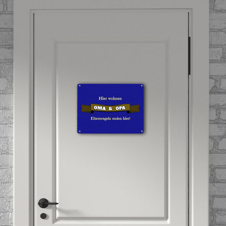 Ab €12,95Grundpreis /Nicht verfügbarAuf LagerHier wohnen Oma und Opa - Elternregeln enden hier Metallschild in 15x20 cm