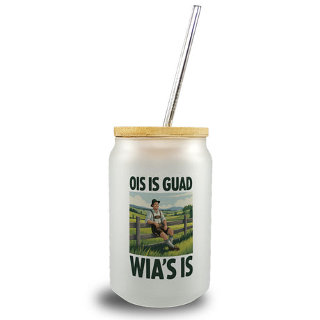 €4,95Grundpreis /Nicht verfügbarAuf LagerZufriedener Bauer Ois is guad wia´s is Trinkglas mit Bambusdeckel