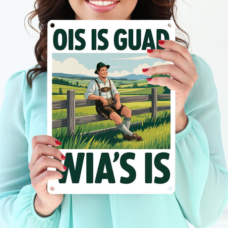 €10,95Grundpreis /Nicht verfügbar Zufriedener Bauer Ois is guad wia´s is Metallschild in 15x20 cm