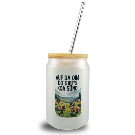 Ab €12,95Grundpreis /Nicht verfügbarAuf LagerAuf da Oim, do gibt's koa Sünd Trinkglas mit Bambusdeckel Berglandschaft mit Kühen