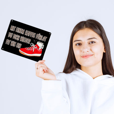 Mit Kaffee fühlst du dich fit Metallschild in 15x20 cm