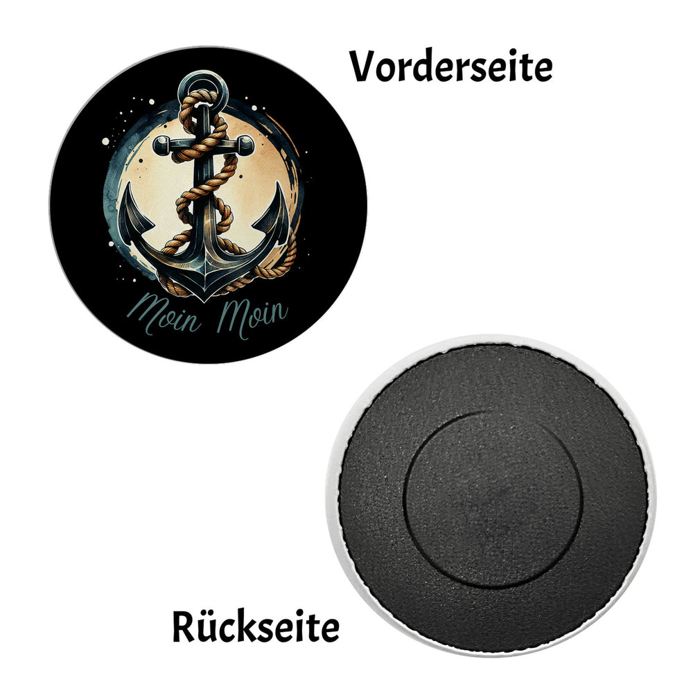 • 1x Anker mit Seil Magnet rund mit Spruch Moin Moin in der gewählten Ausführung