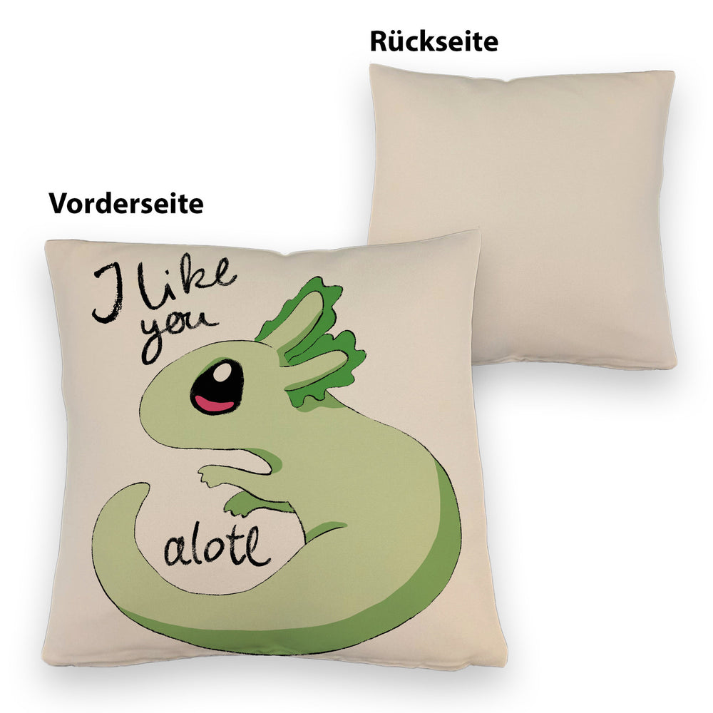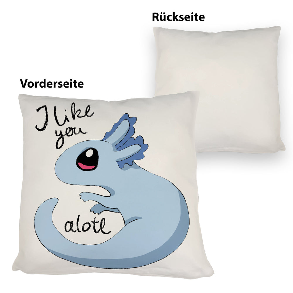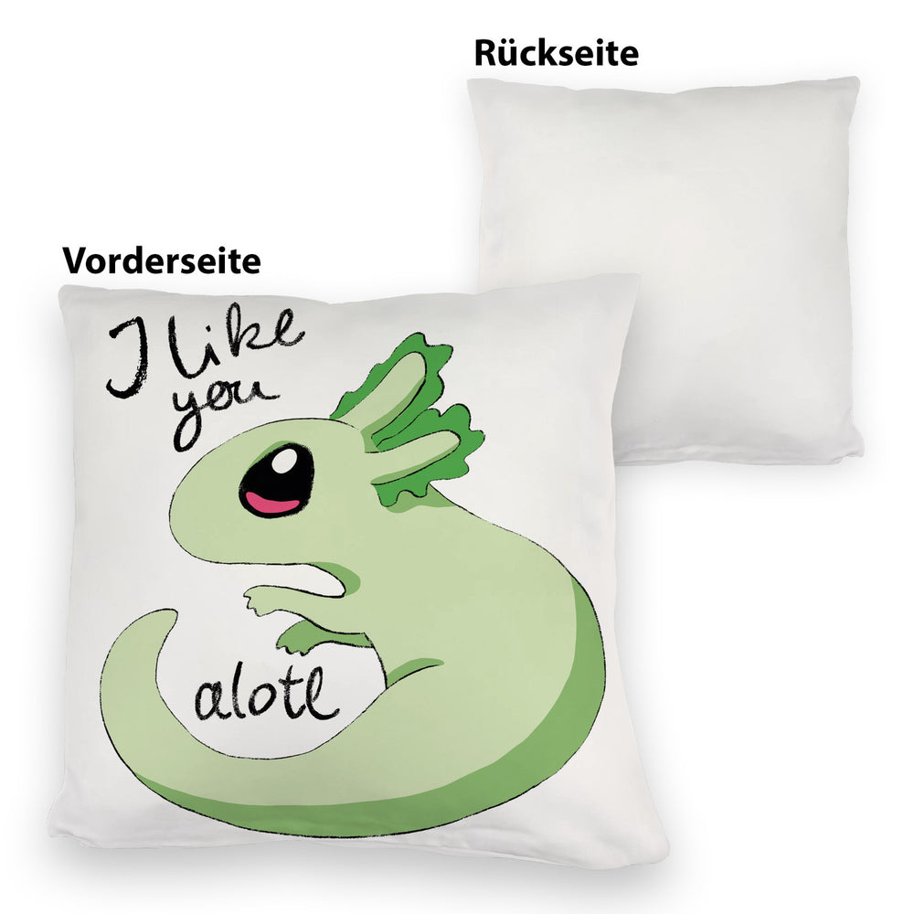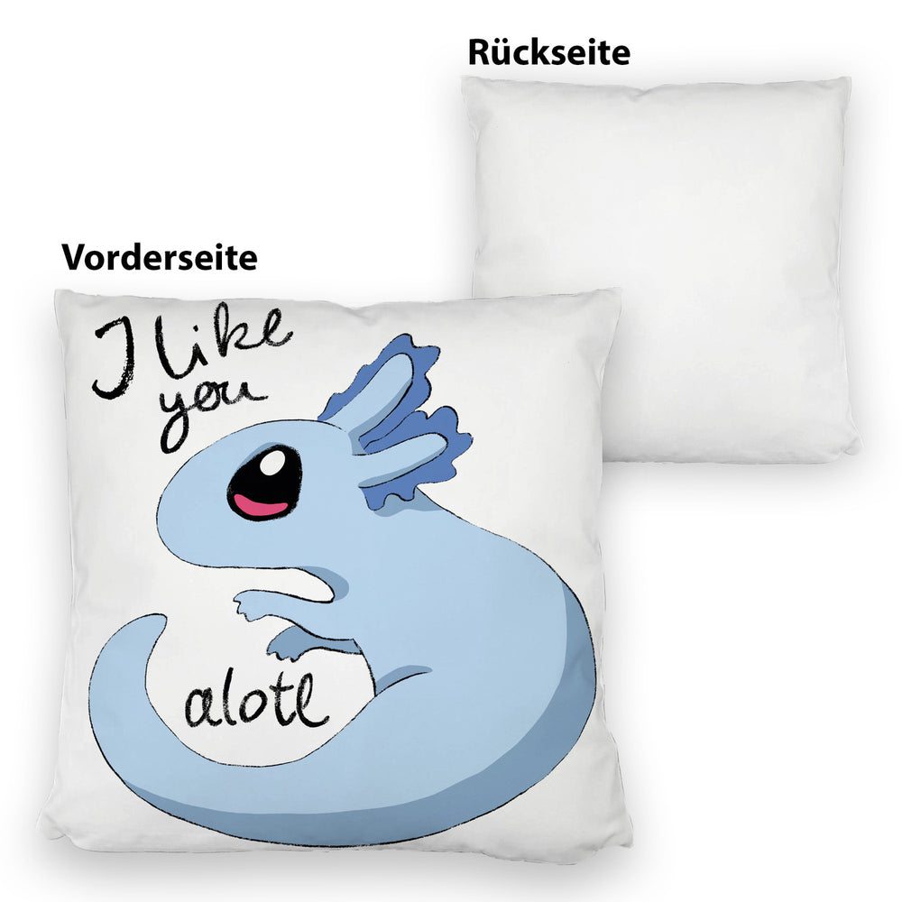 • 1x Axolotl Kissen in rosa mit Spruch I like you alotl in der gewählten Ausführung