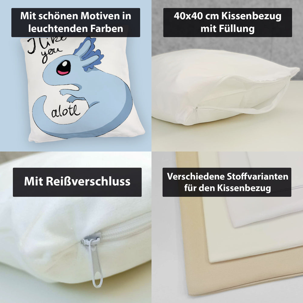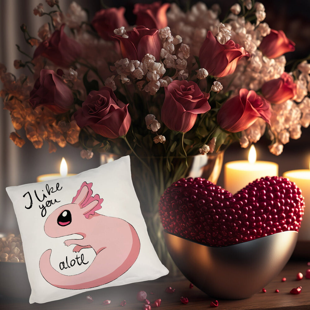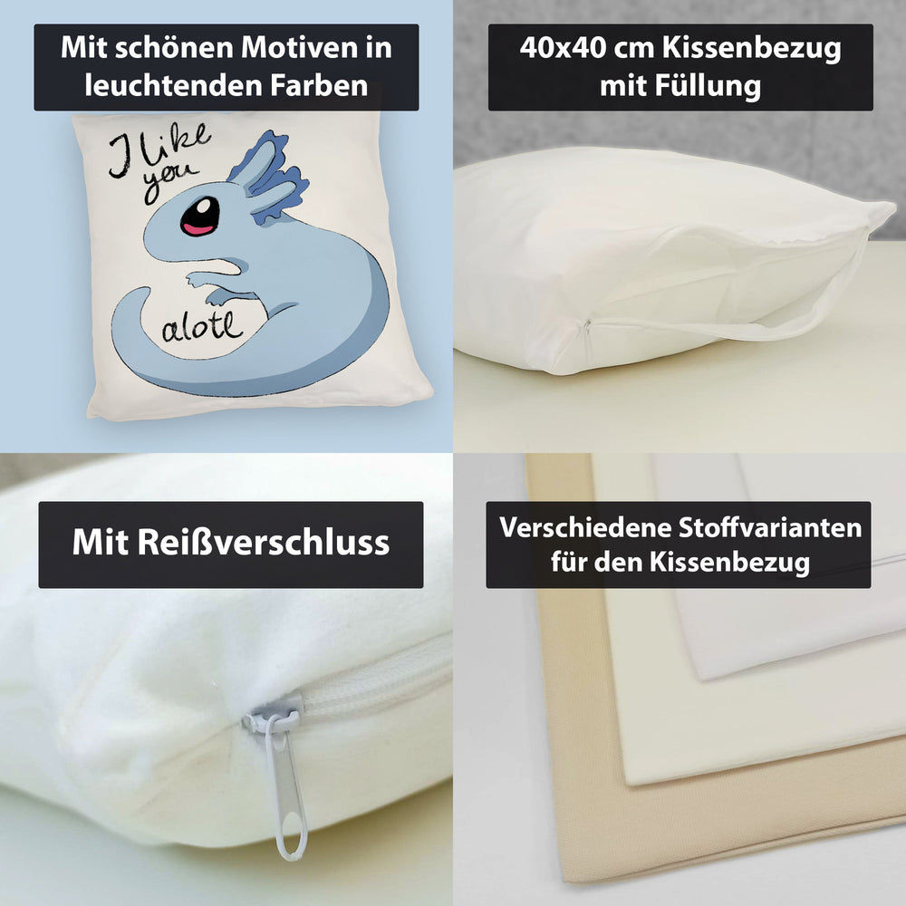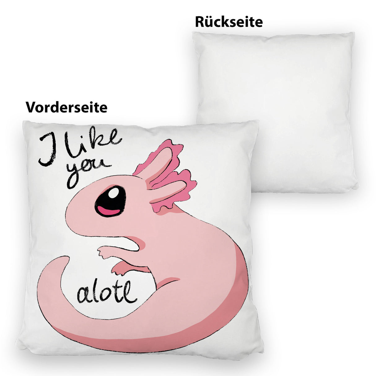 • 1x Axolotl Kissen in rosa mit Spruch I like you alotl in der gewählten Ausführung