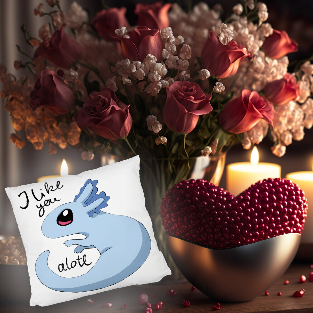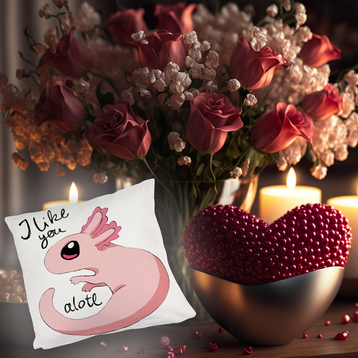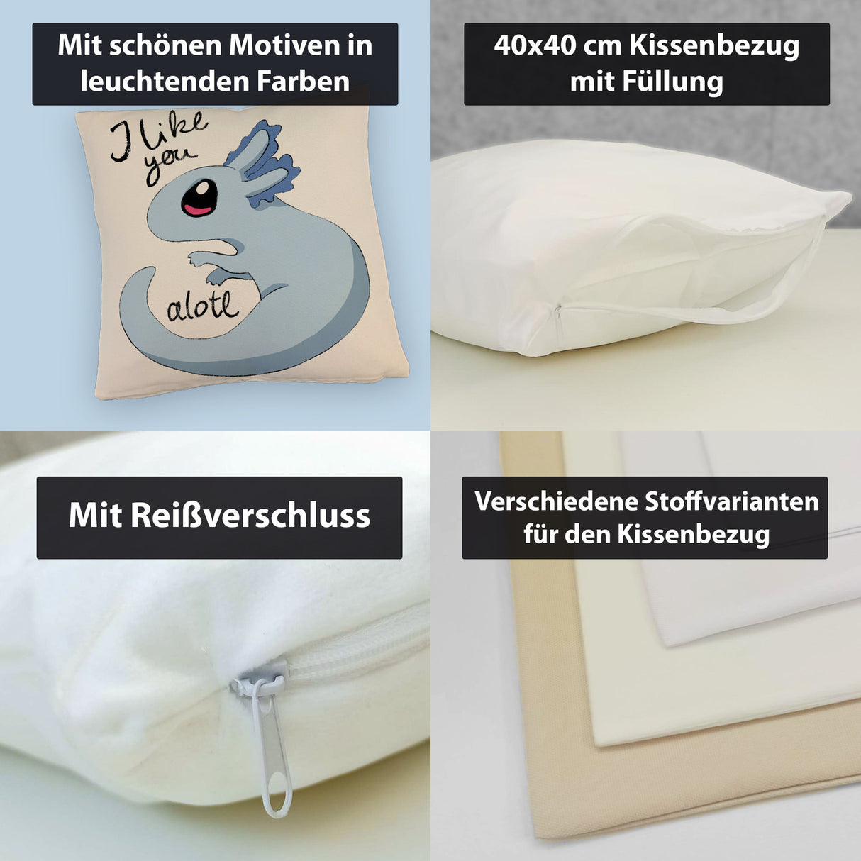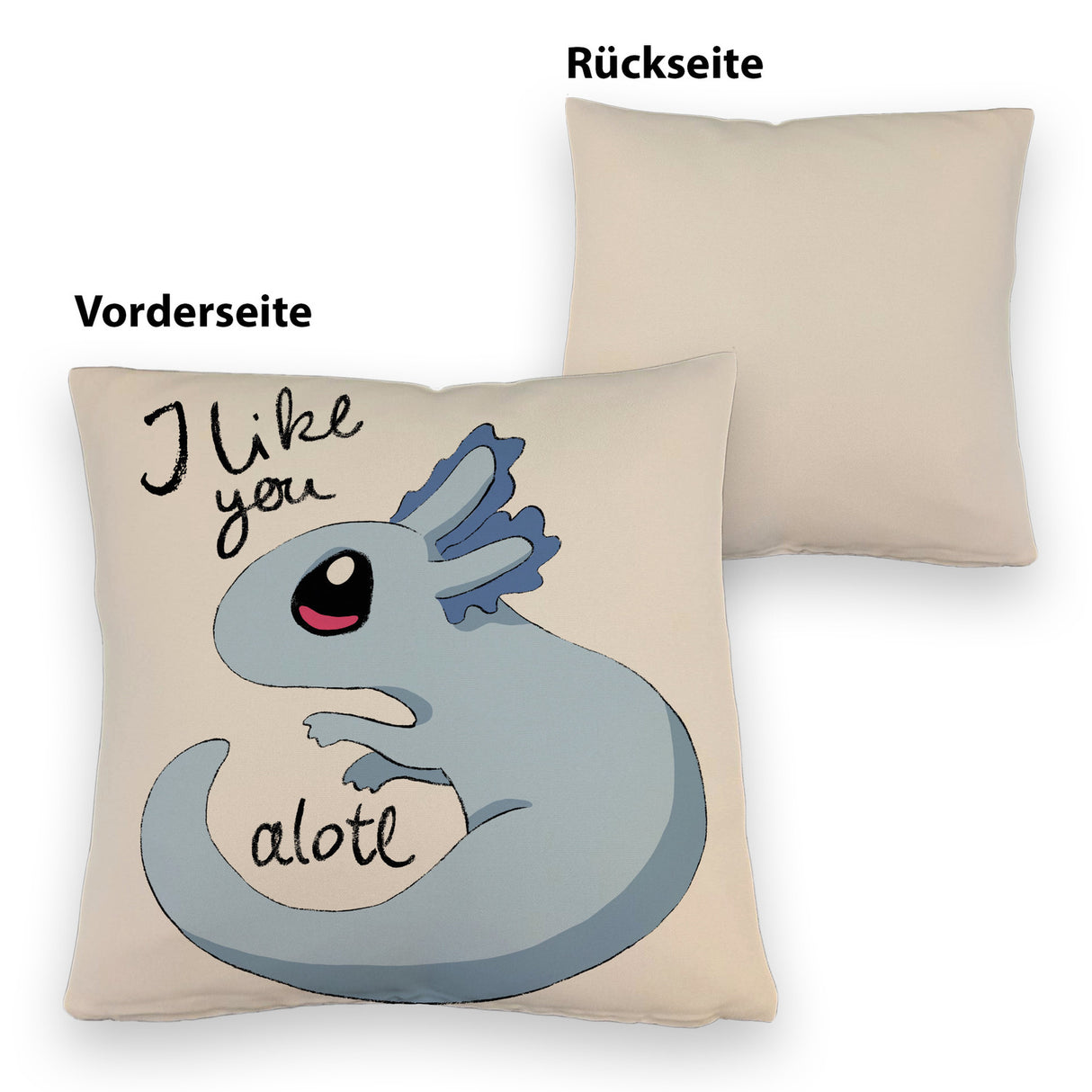 • 1x Axolotl Kissen in rosa mit Spruch I like you alotl in der gewählten Ausführung