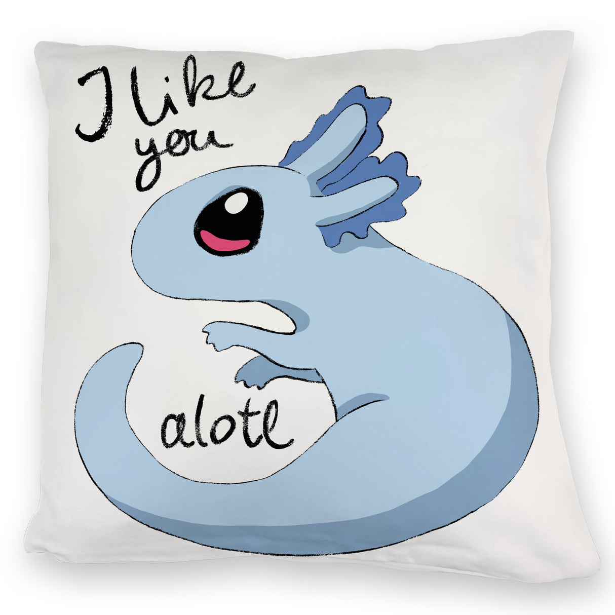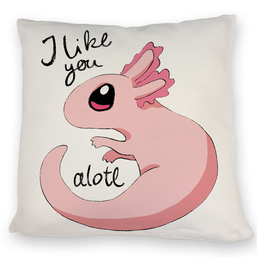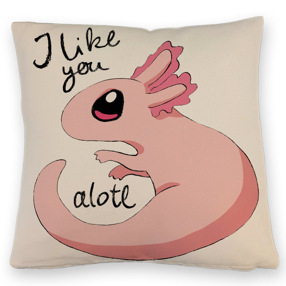 Axolotl Kissen in rosa mit Spruch I like you alotl