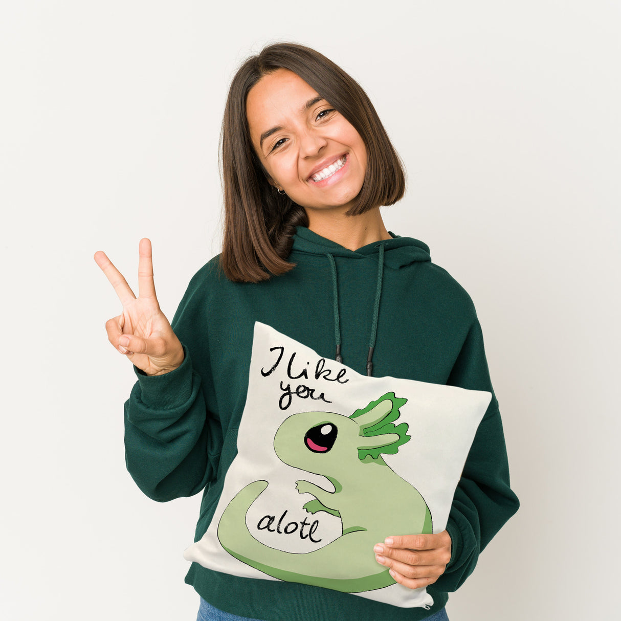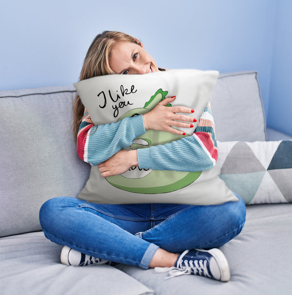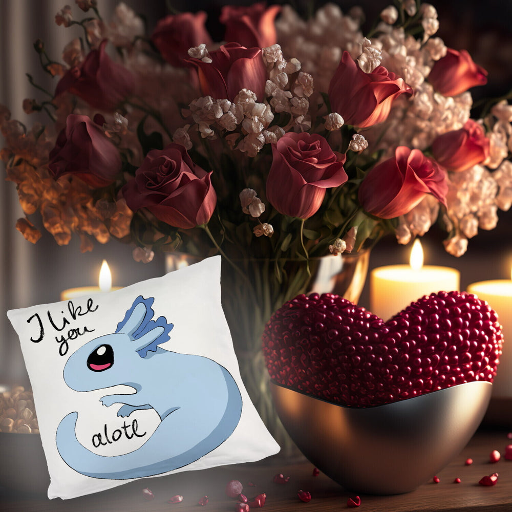 Axolotl Kissen in rosa mit Spruch I like you alotl