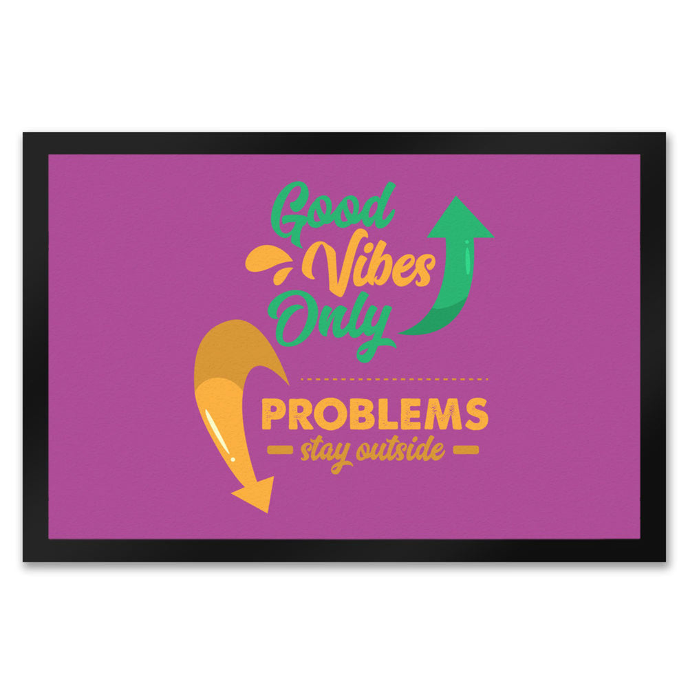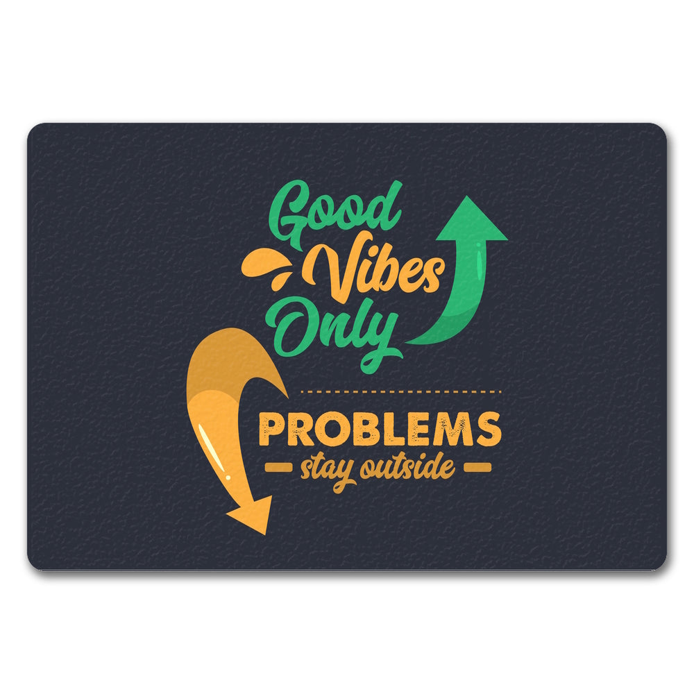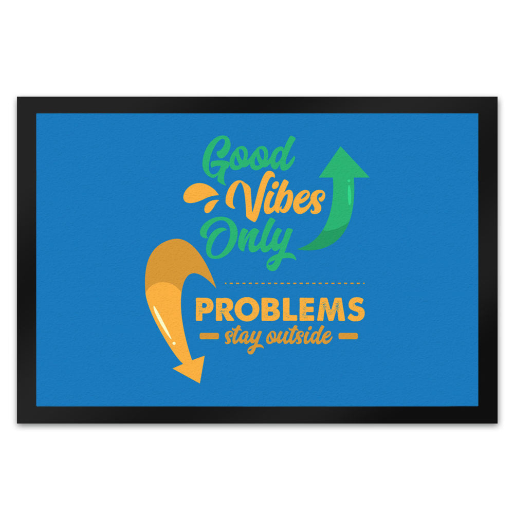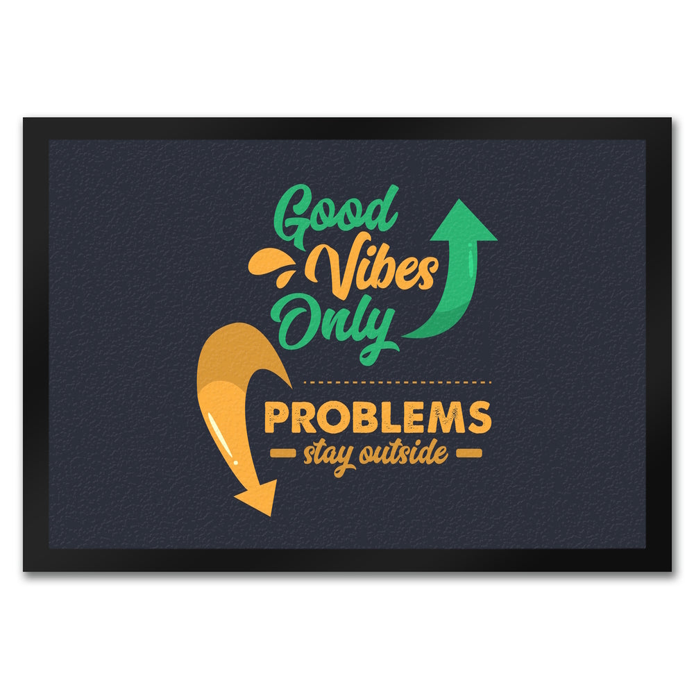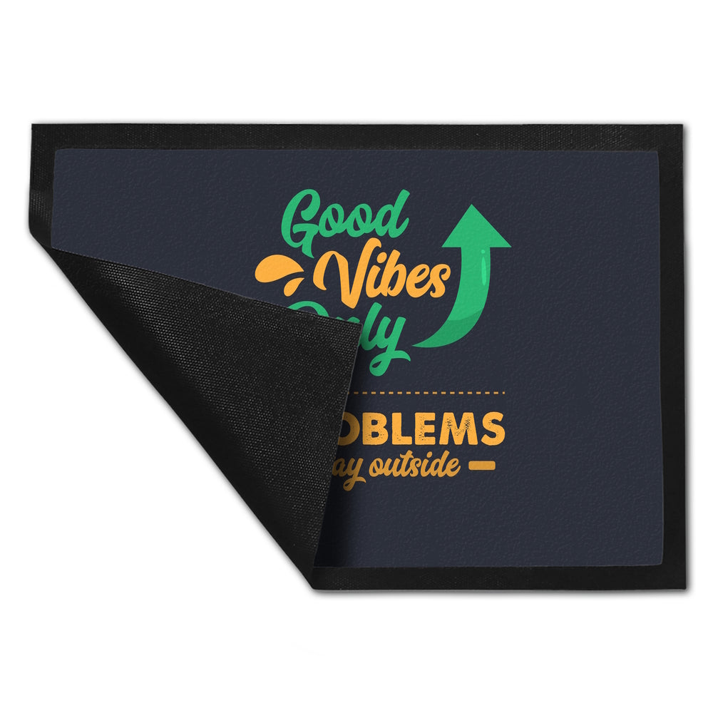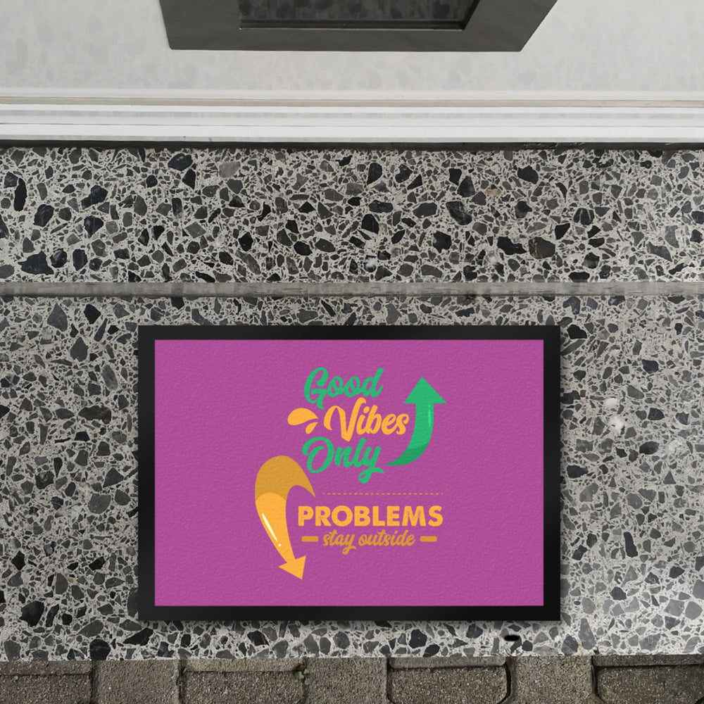 - Mit unserer dekorativen Fußmatte mit dem "Good Vibes Only" Motiv können Sie Ihren Freunden zum Geburtstag direkt gute Laune schenken. Auf der Matte ist "Good Vibes Only - Problems stay outside" aufgedruckt, sodass jeder weiß, bei dir Zuhause gibt es nur gute Laune.
