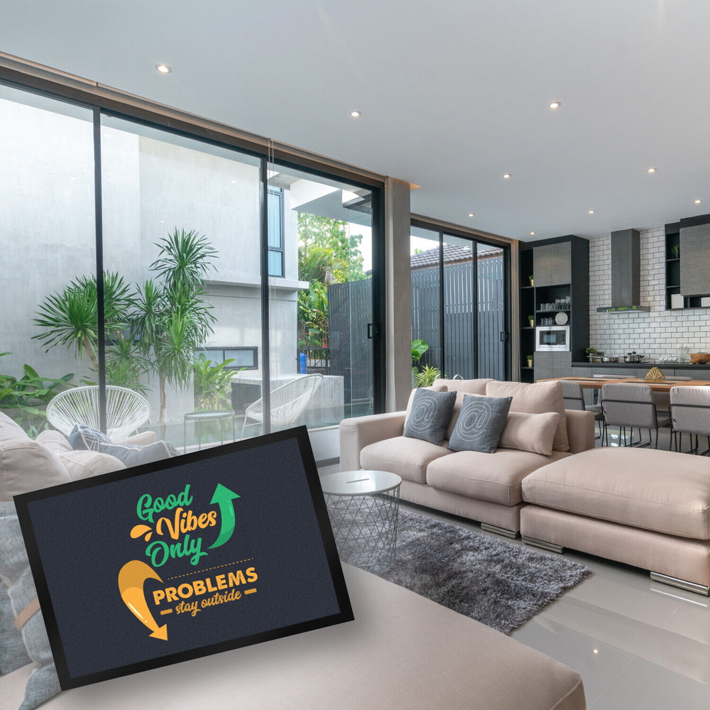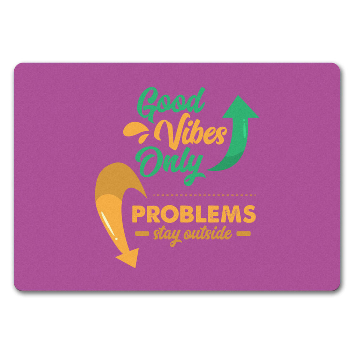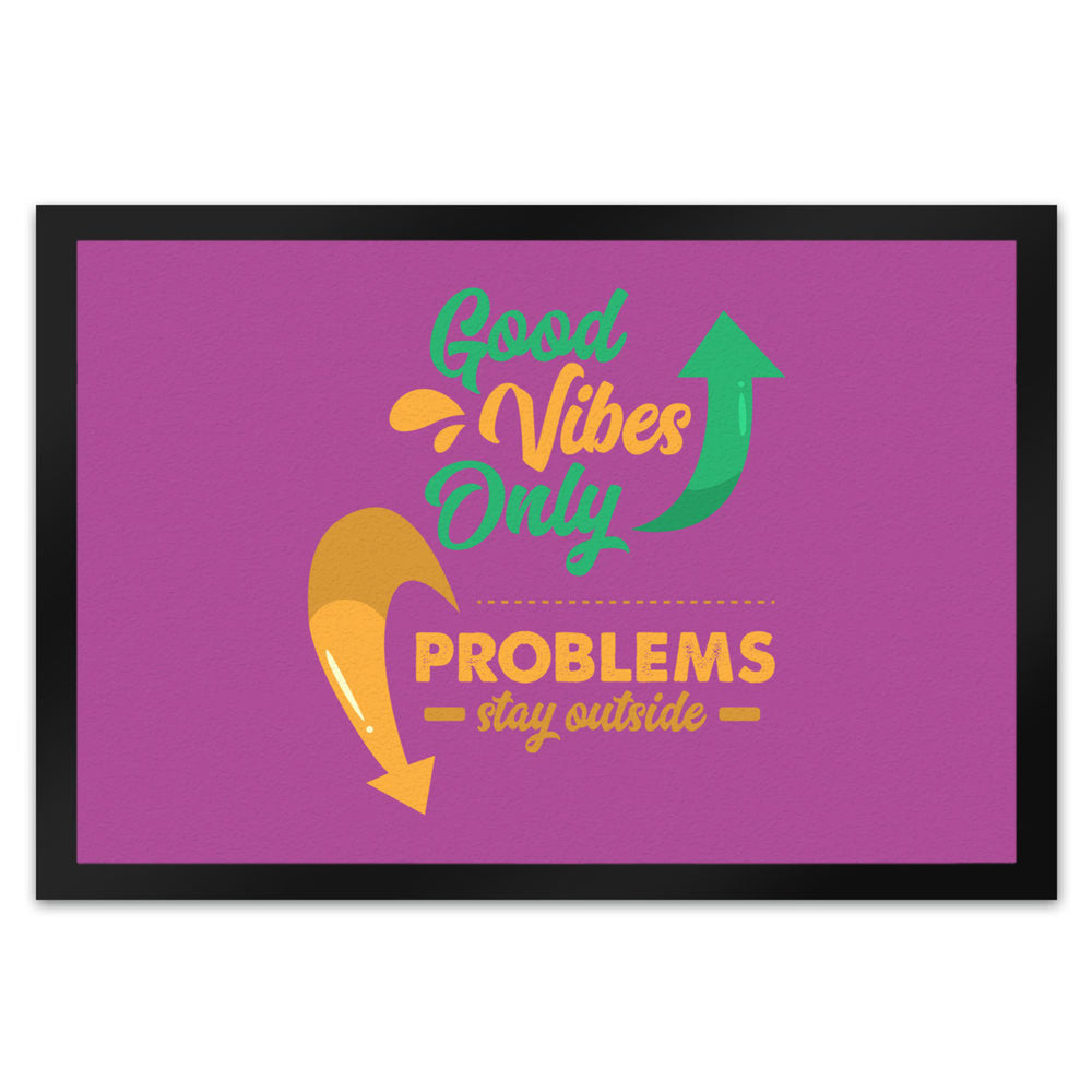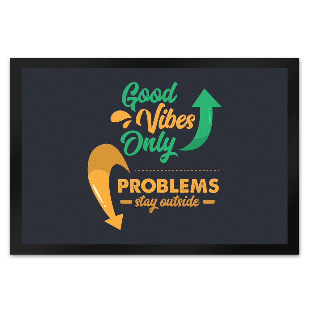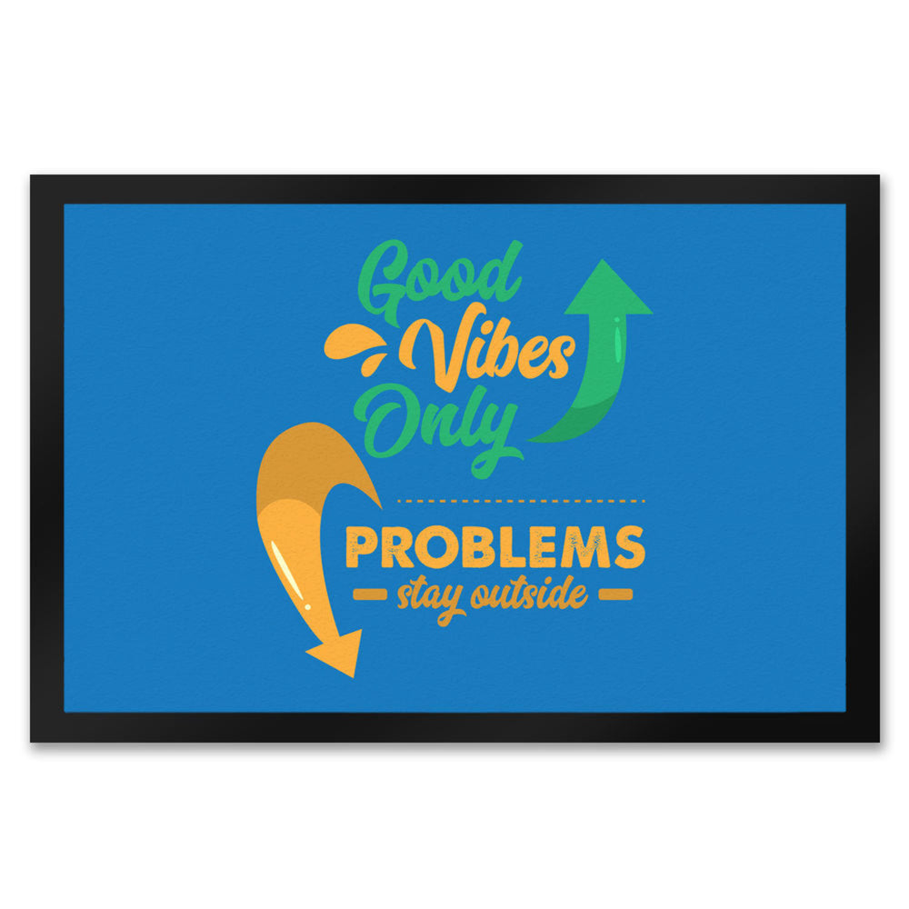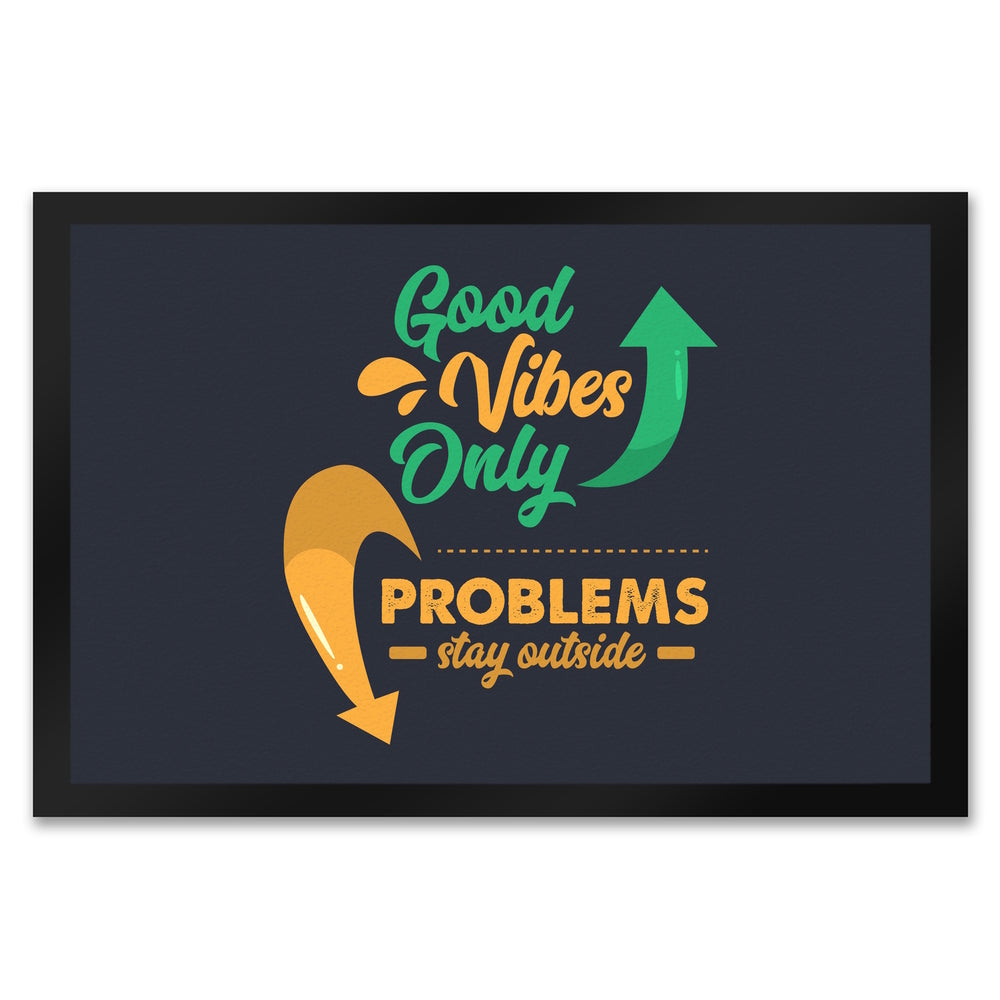 - Mit unserer dekorativen Fußmatte mit dem "Good Vibes Only" Motiv können Sie Ihren Freunden zum Geburtstag direkt gute Laune schenken. Auf der Matte ist "Good Vibes Only - Problems stay outside" aufgedruckt, sodass jeder weiß, bei dir Zuhause gibt es nur gute Laune.