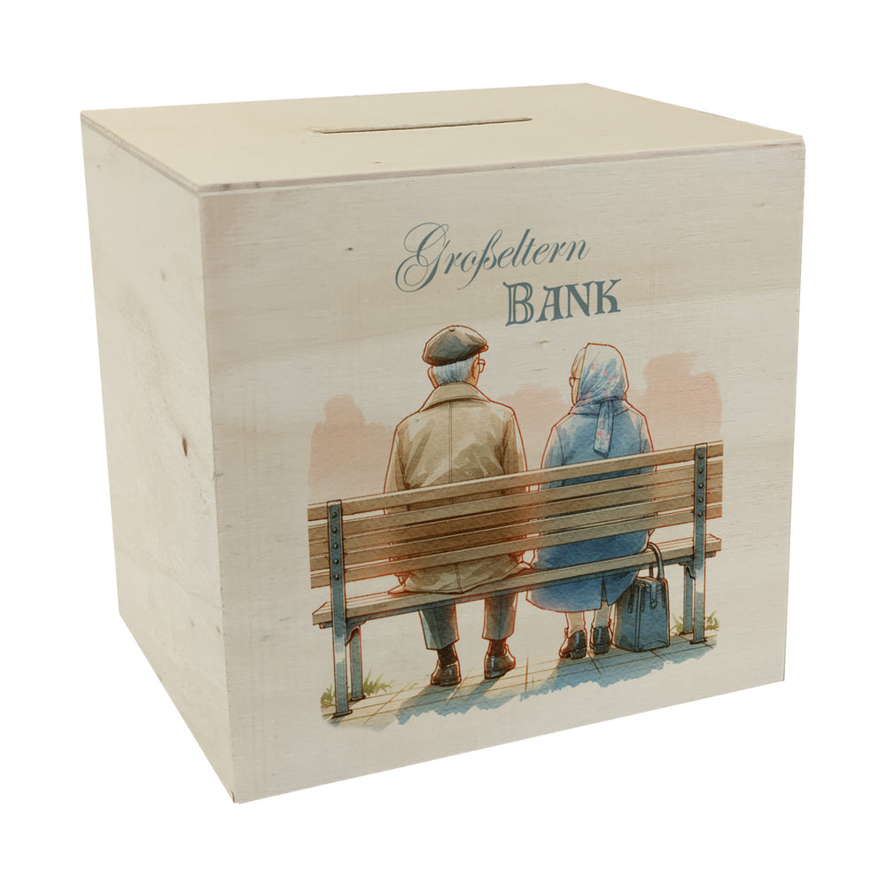 - 1x Großeltern auf einer Bank Spardose in der gewählten Ausführung