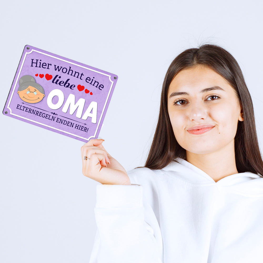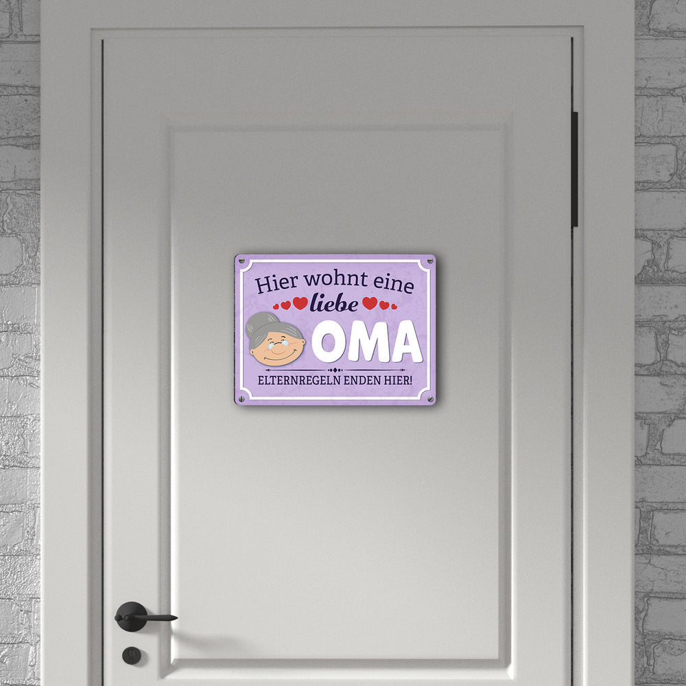 • 1x Hier wohnt eine liebe Oma Metallschild in der gewählten Größe