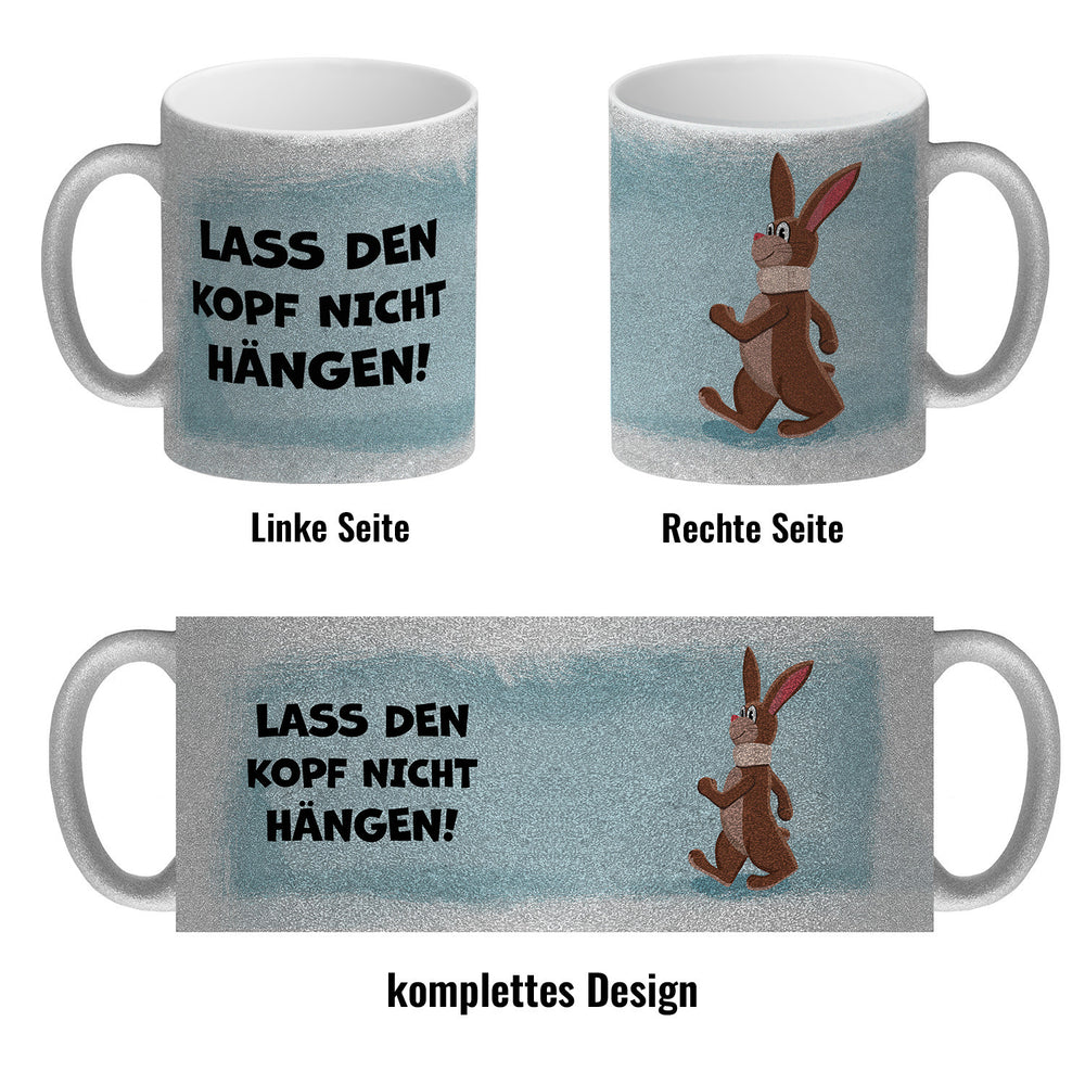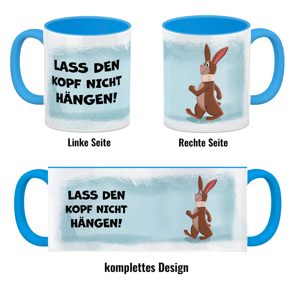 - 1x Lass den Kopf nicht hängen aufmunternde Kaffeetasse mit lustigem Hasen in der gewählten Ausführung
