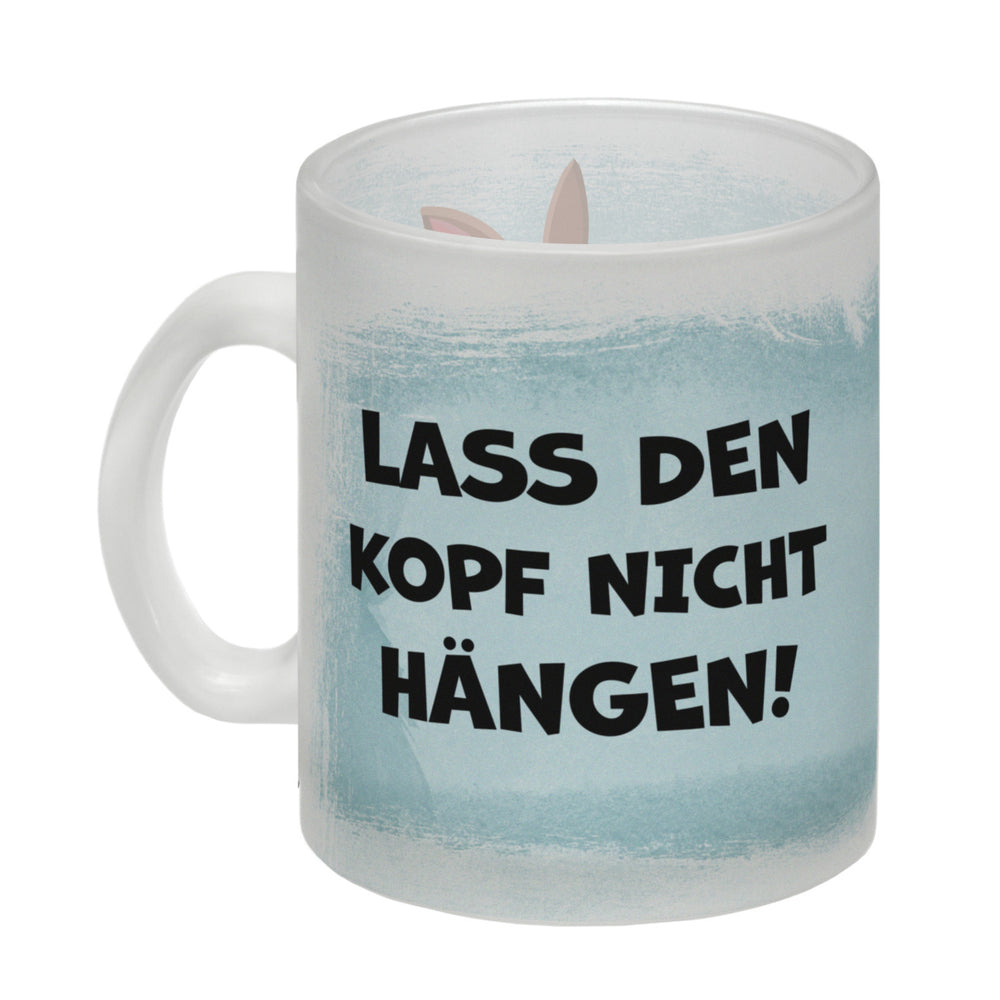 Lass den Kopf nicht hängen aufmunternde Kaffeetasse mit lustigem Hasen