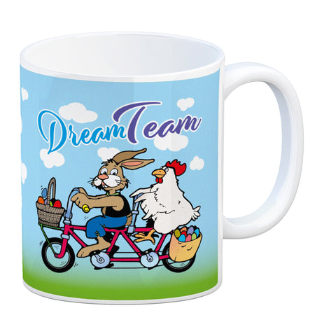 Osterhase und Huhn auf Tandem Kaffeebecher Thema Ostern
