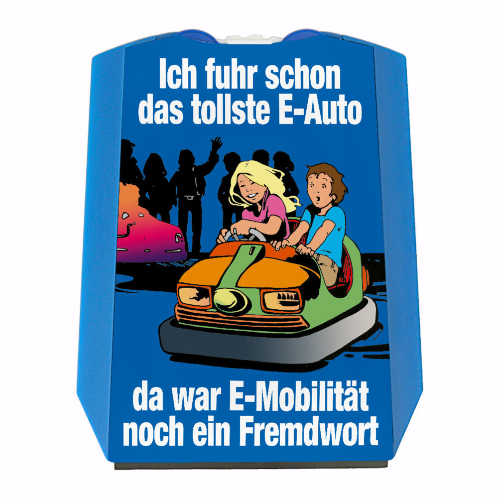 - Lieferumfang: 1x Boxauto als E-Auto Parkscheibe mit Spruch zu E-Mobilität in blau