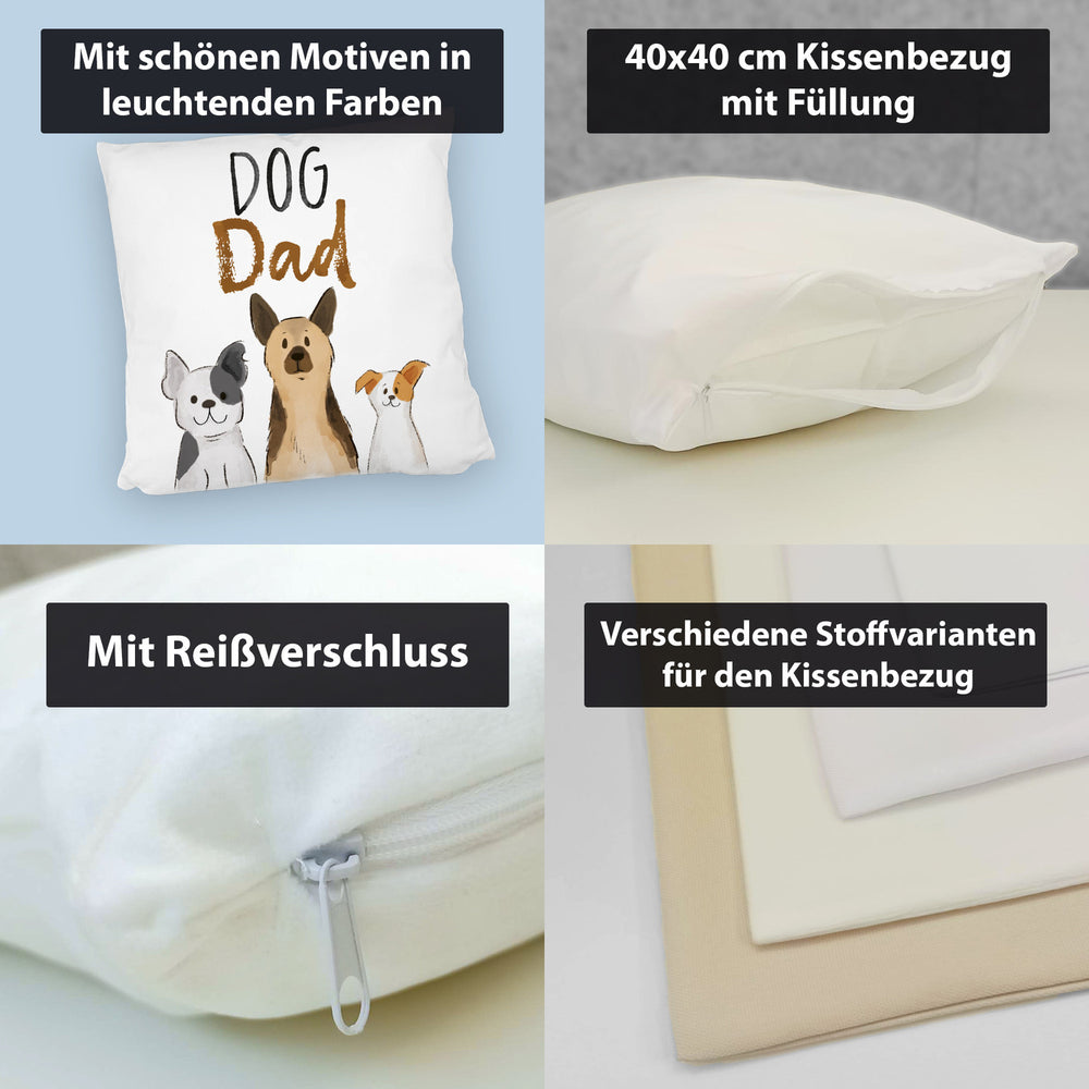 | Dog Dad/satiniert | ![]() | Material: Polyester / Größe: ca. 40x40 cm / Bezug bei 30° waschbar |