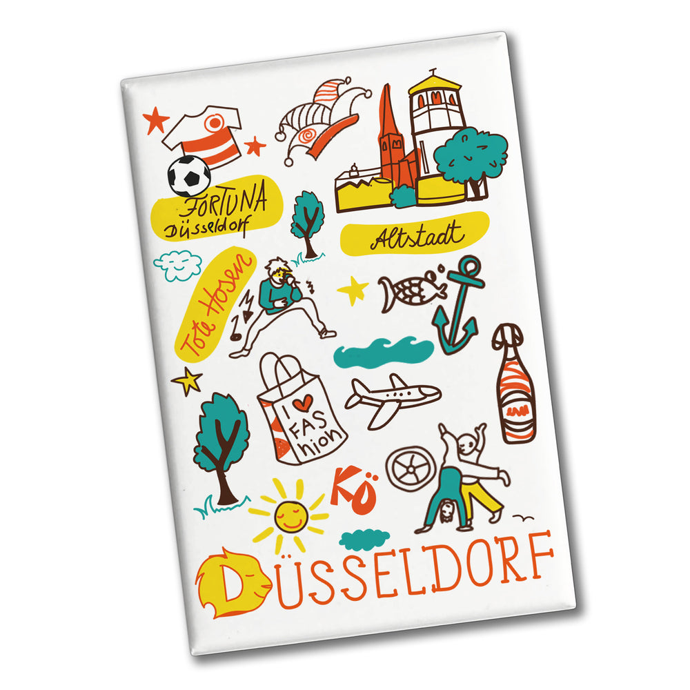 - Greifen Sie zu und holen Sie sich ein Stück Düsseldorfer Charme! Mit Liebe zum Detail in Deutschland designt und bedruckt, überzeugt der Magnet mit Qualität und frischem Stil. Verschönern Sie Ihren Kühlschrank und zeigen Sie Ihre Zuneigung zur Modemetropole! Ein unverzichtbares Andenken für alle Düsseldorf-Fans.