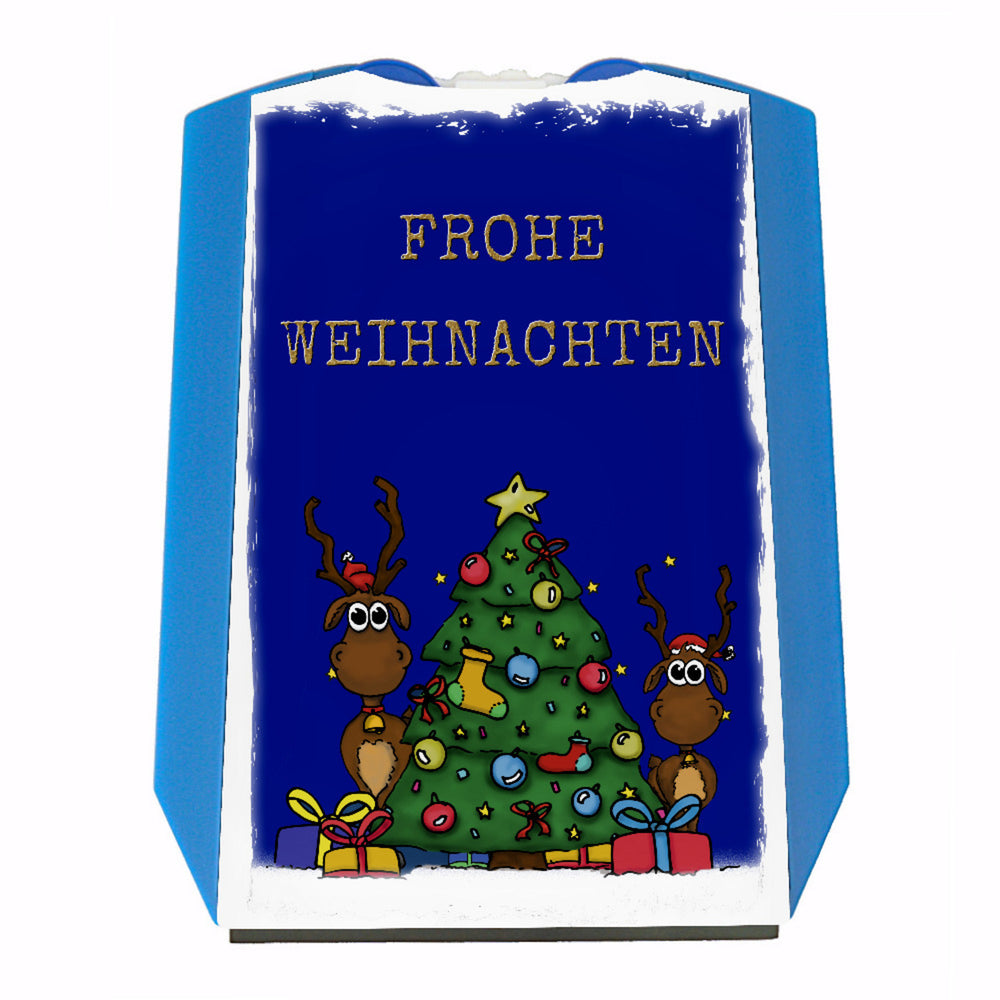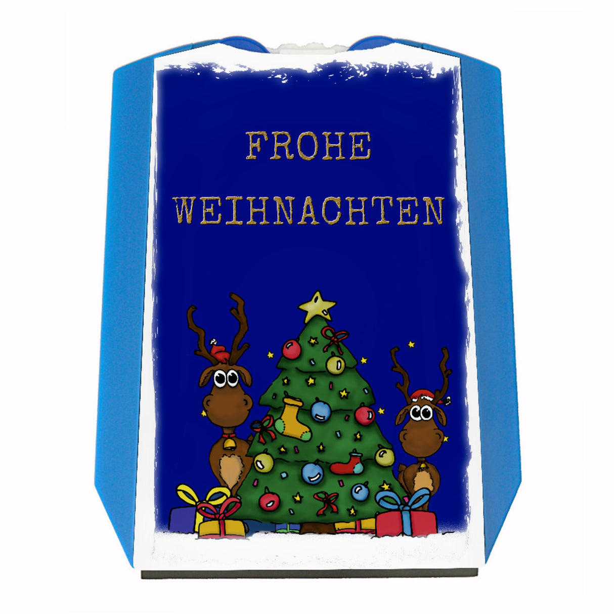 Frohe Weihnachten Metallschild mit Rentiere und blauem Hintergrund