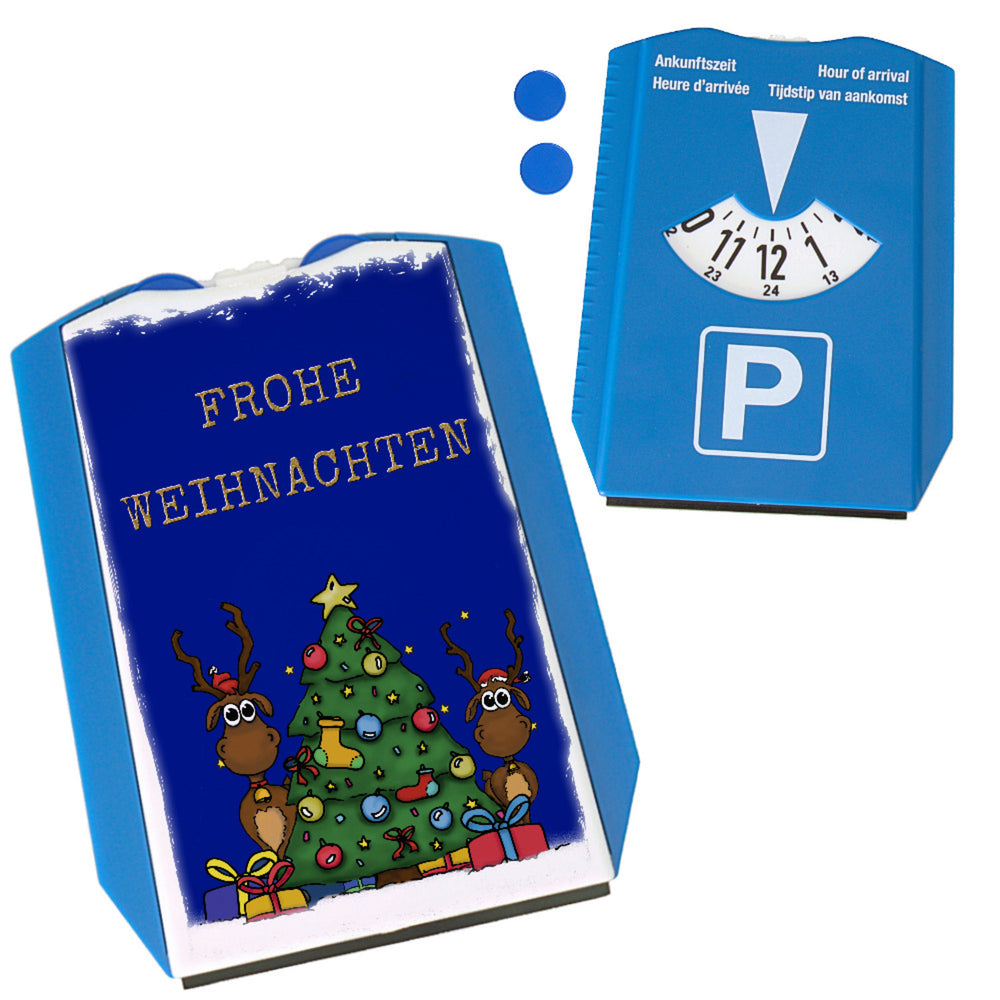 Frohe Weihnachten Parkscheibe mit Weihnachtsbaum und Rentieren Motiv