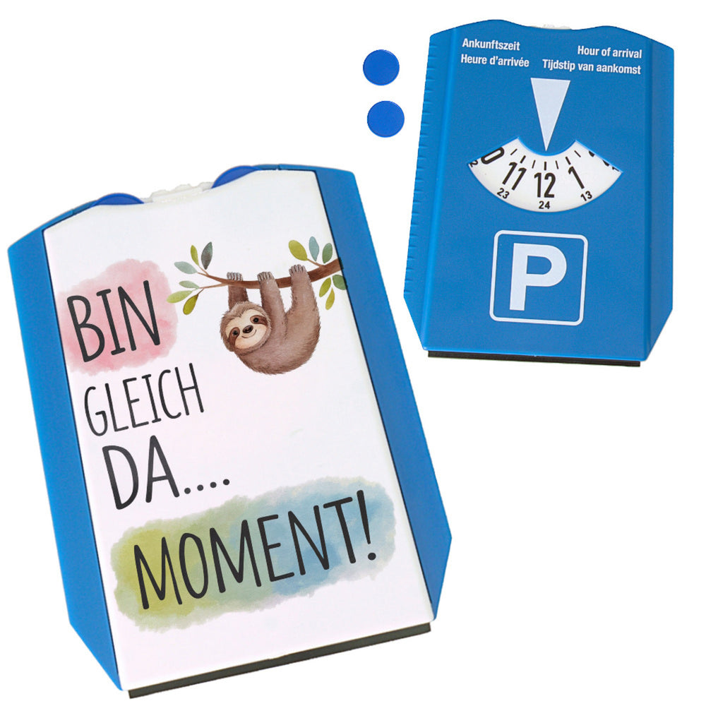 • Lieferumfang: 1x Fröhliches Faultier Bin gleich da Parkscheibe