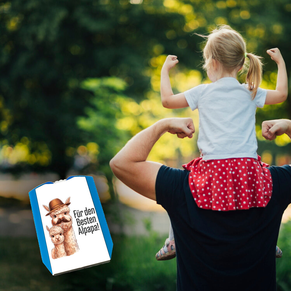 - Die humorvolle Parkscheibe zeigt ein charmantes Alpaka-Duo - einen bärtigen Alpaka-Papa mit Schnurrbart und Hut, der stolz seinen kleinen Alpaka-Nachwuchs präsentiert. Die witzige Illustration erhält durch den Spruch "Für den besten ALPAPA!" den letzten Schliff. Der weiße Hintergrund sorgt dafür, dass die Figuren besonders gut zur Geltung kommen.