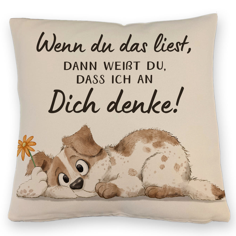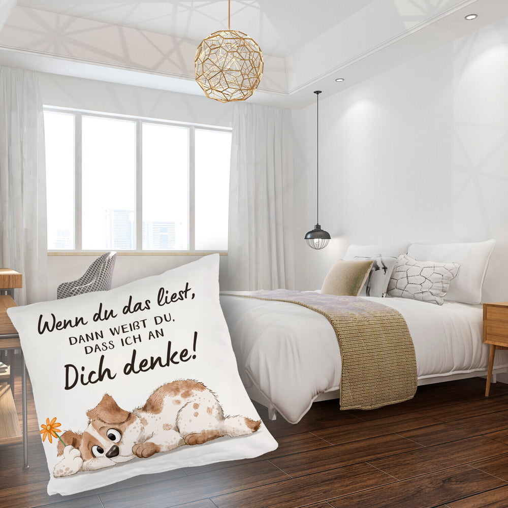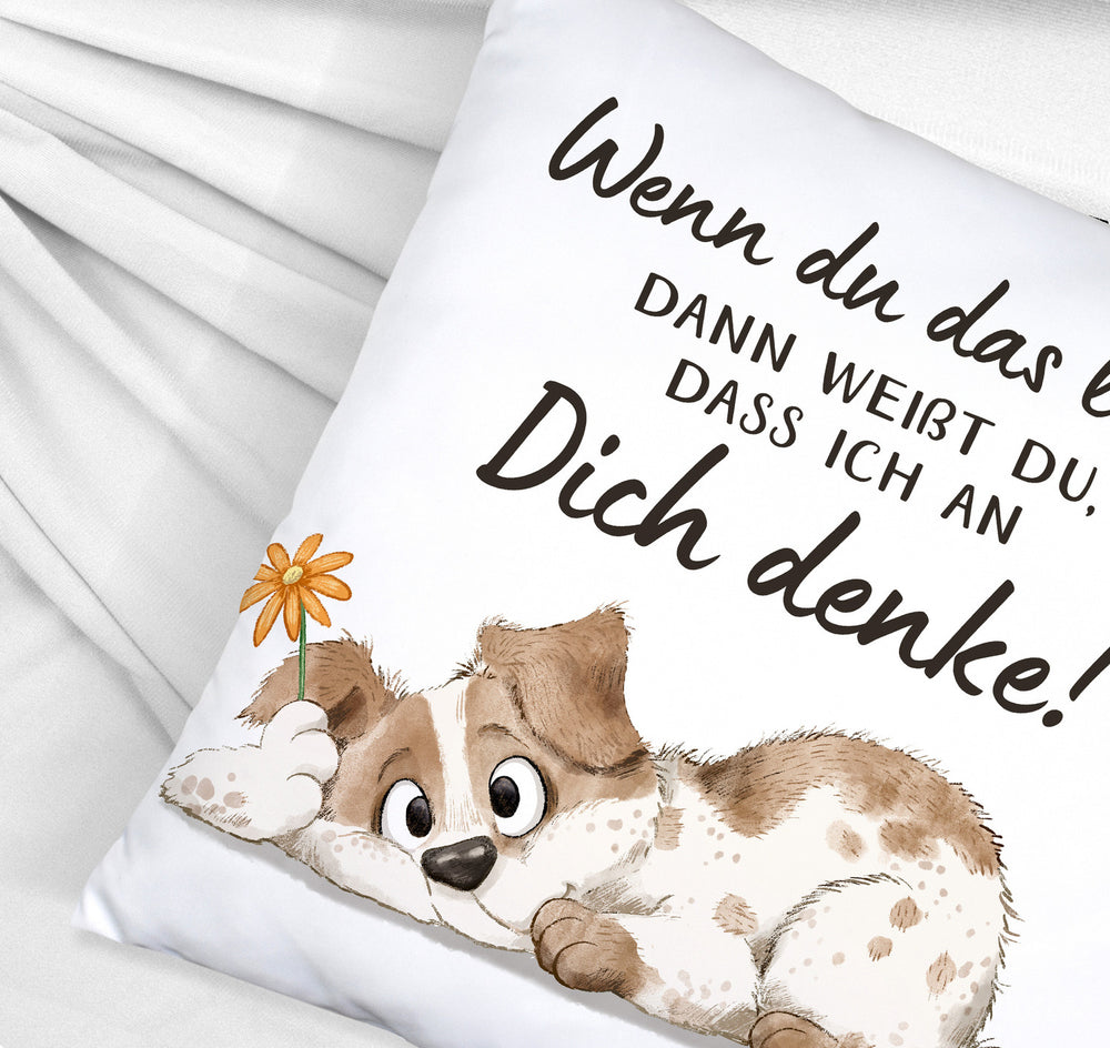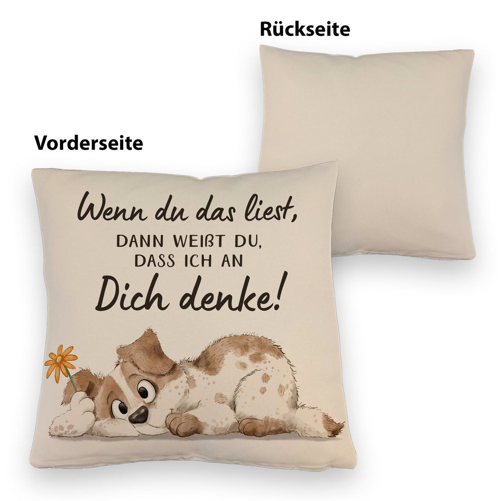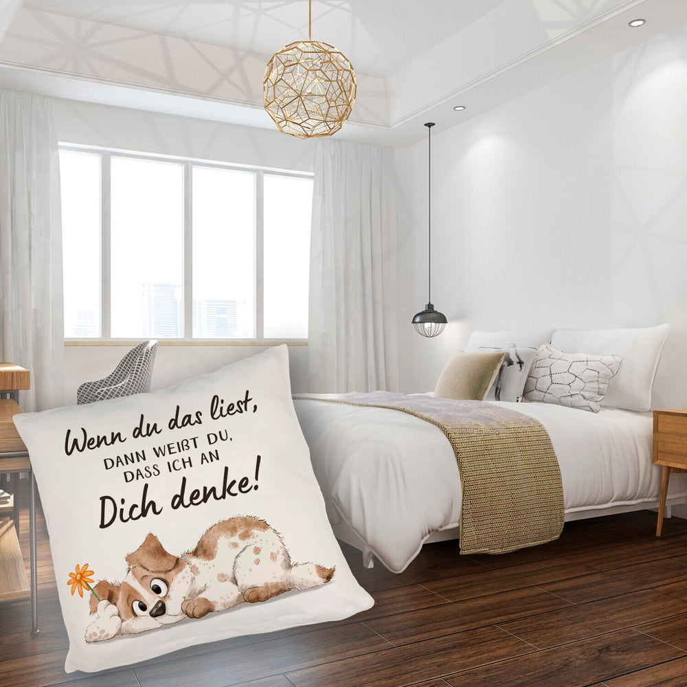 Hund Kissen mit Spruch Damit du weißt dass ich immer an dich denke