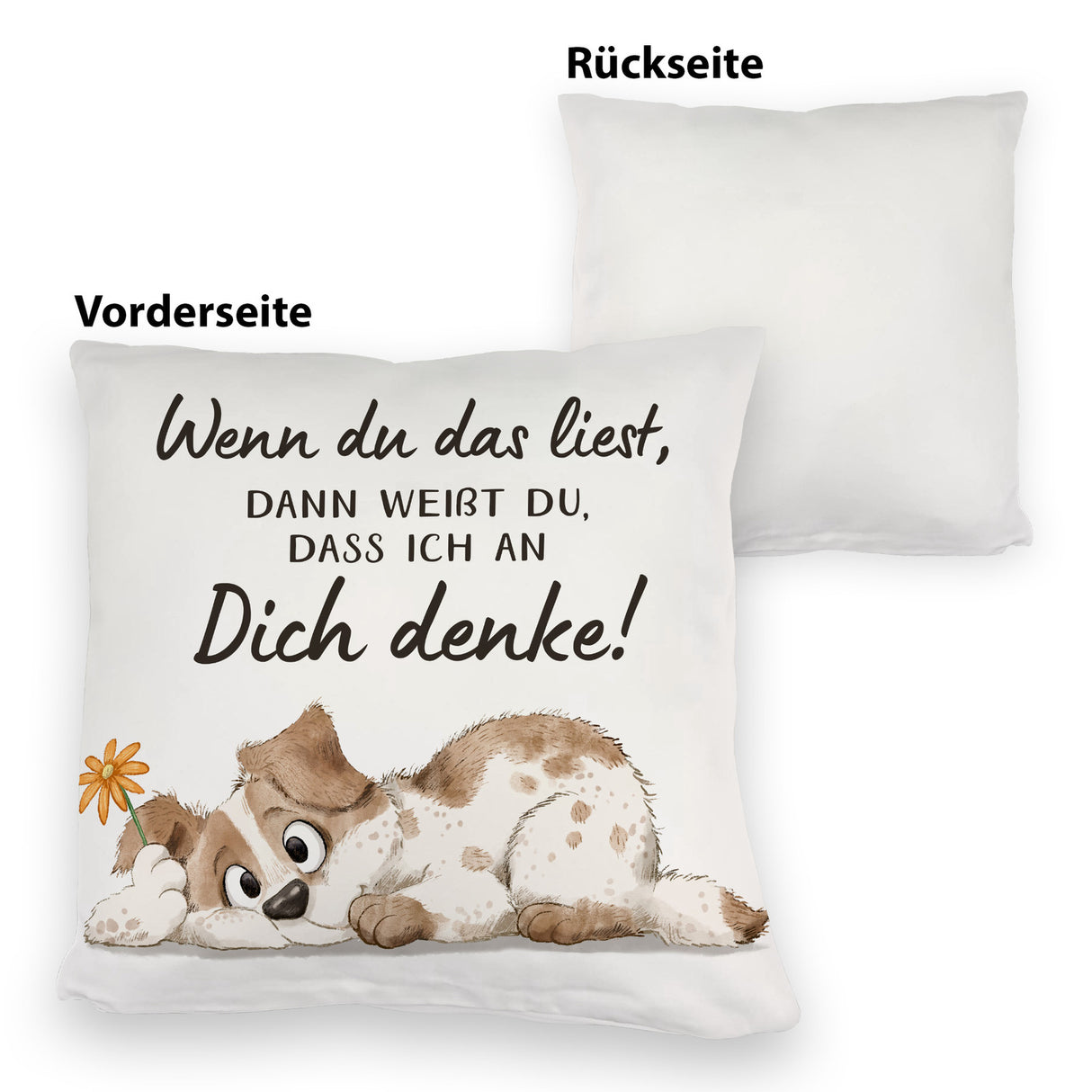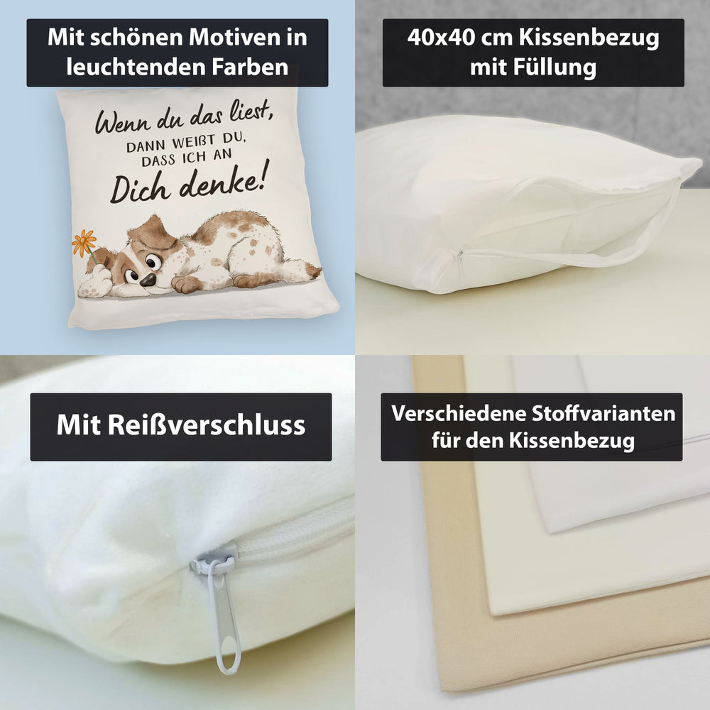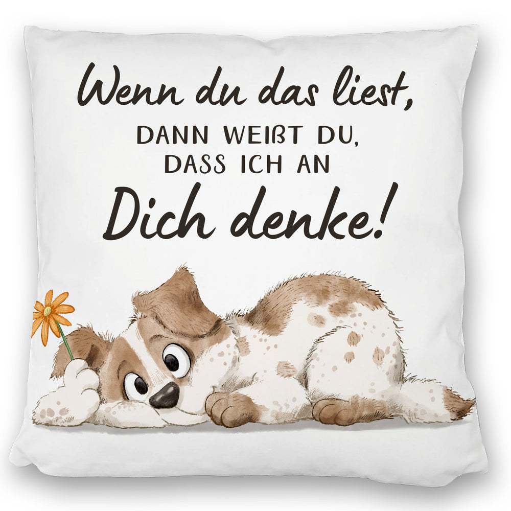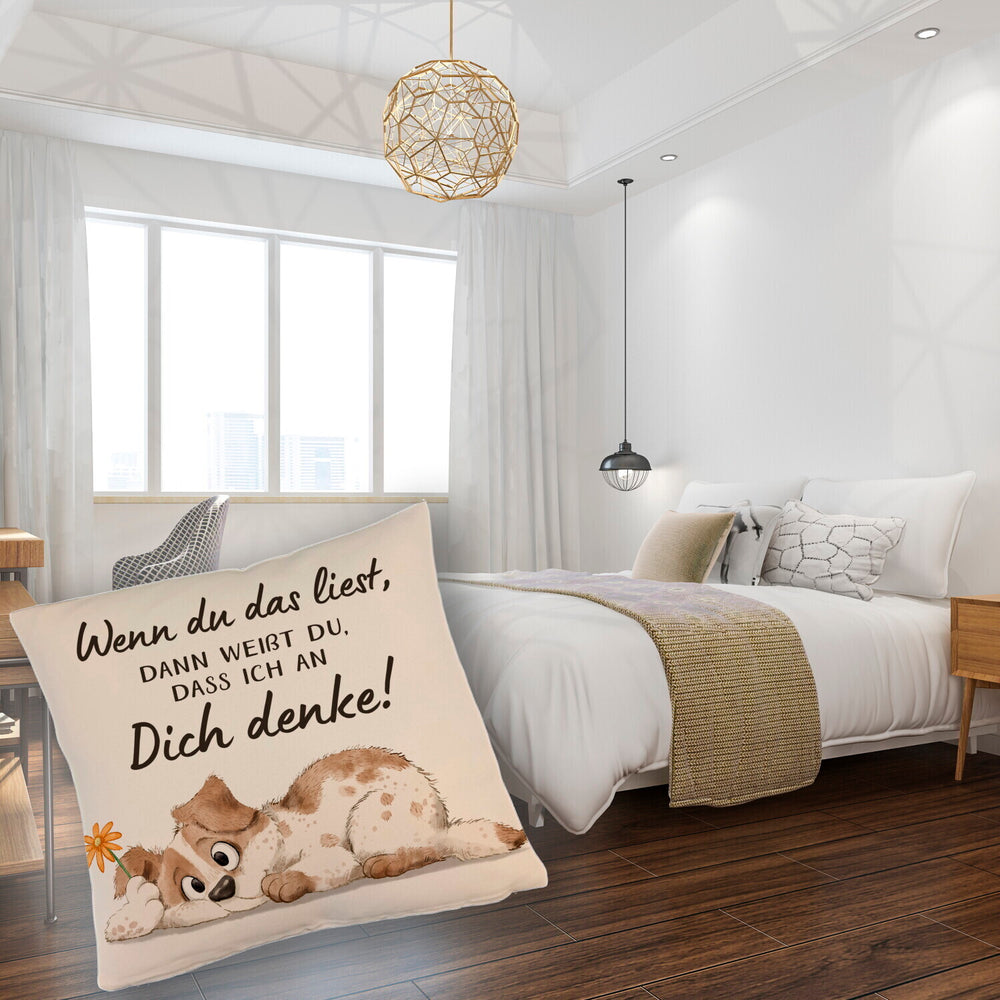 Hund Kissen mit Spruch Damit du weißt dass ich immer an dich denke