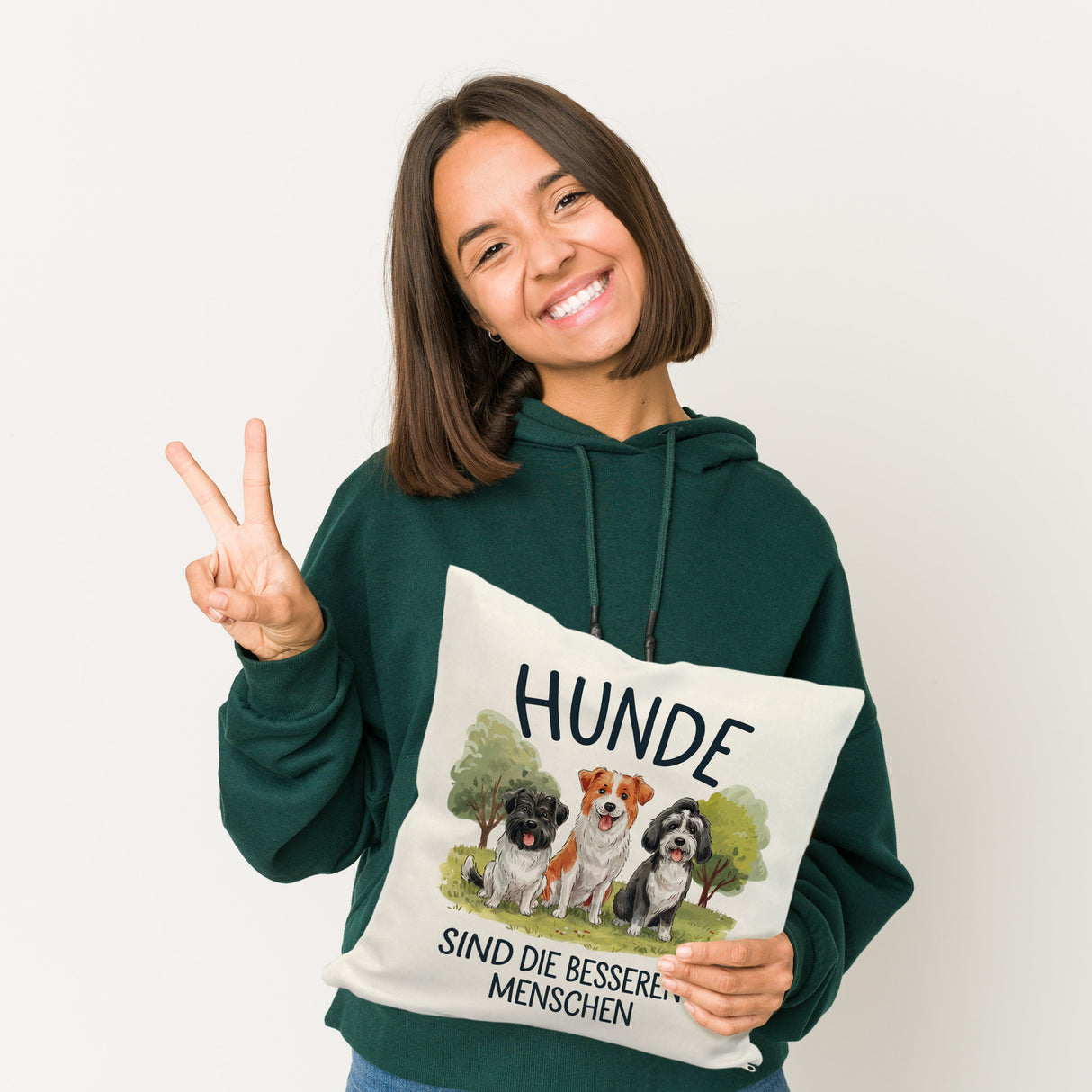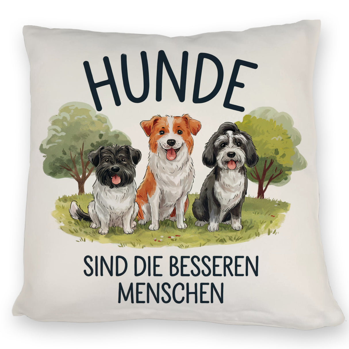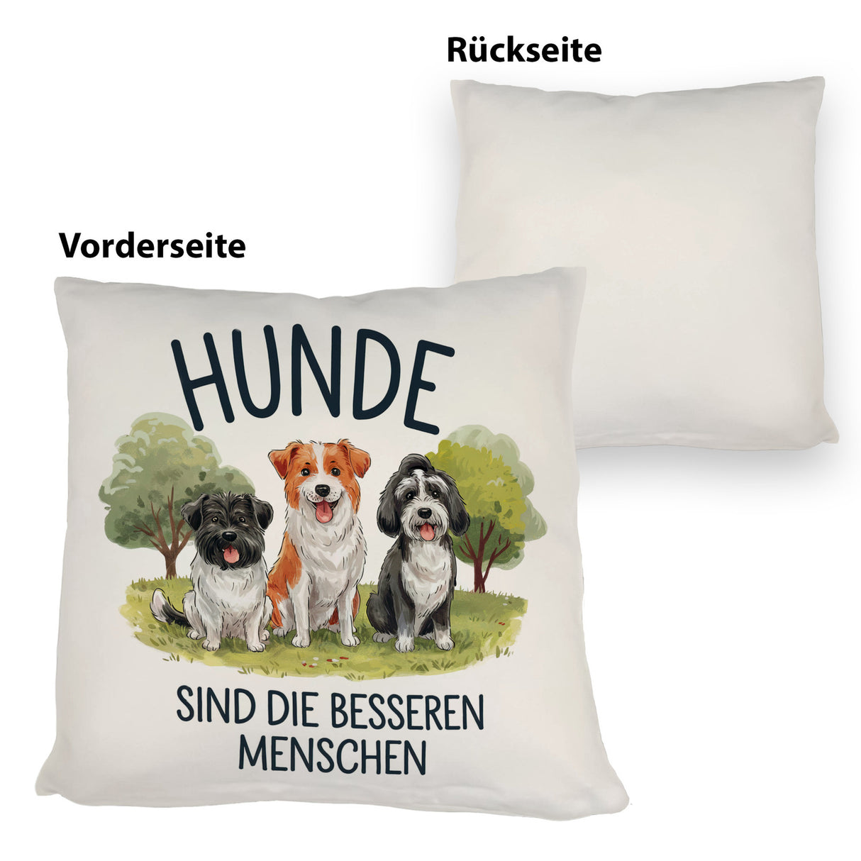 - Hunde sind einfach die besseren Menschen! Dieses bezaubernde Kissen mit drei niedlichen Hunde-Illustrationen wird jeden Hundeliebhaber zum Strahlen bringen. Perfekt für Park- und Wiesen-Ausflüge oder einfach als fröhlicher Blickfang in deinem Raum. Verspielt und charmant – ein Must-Have für Hundeliebhaber!