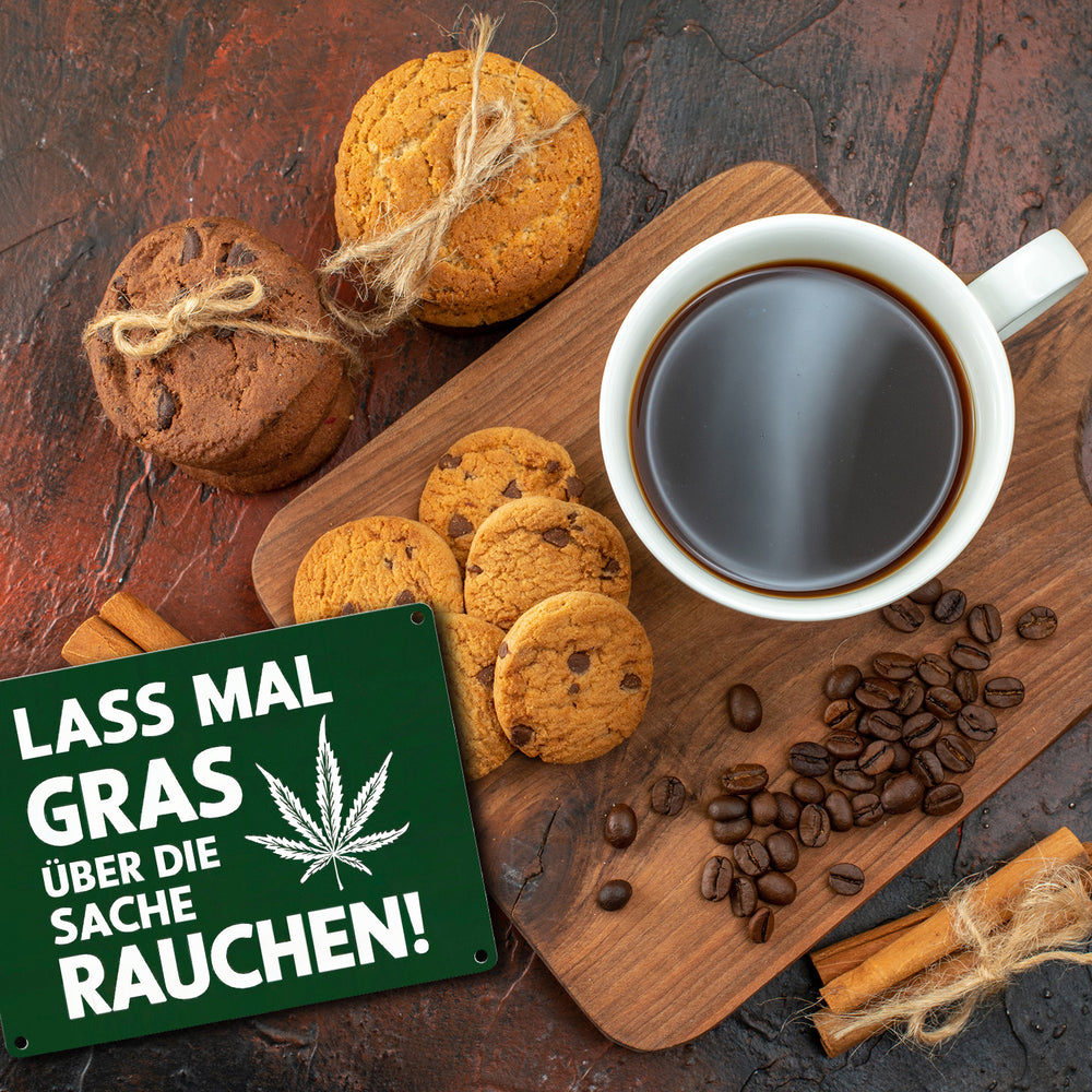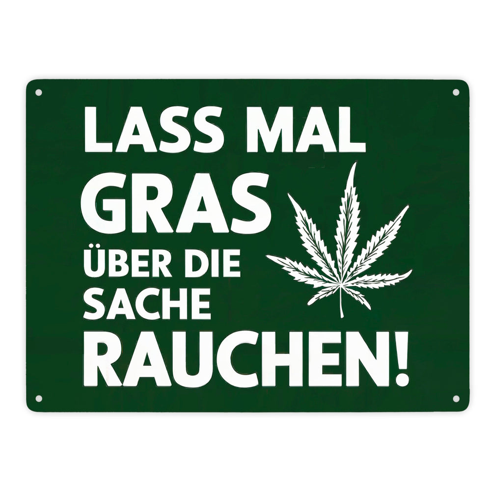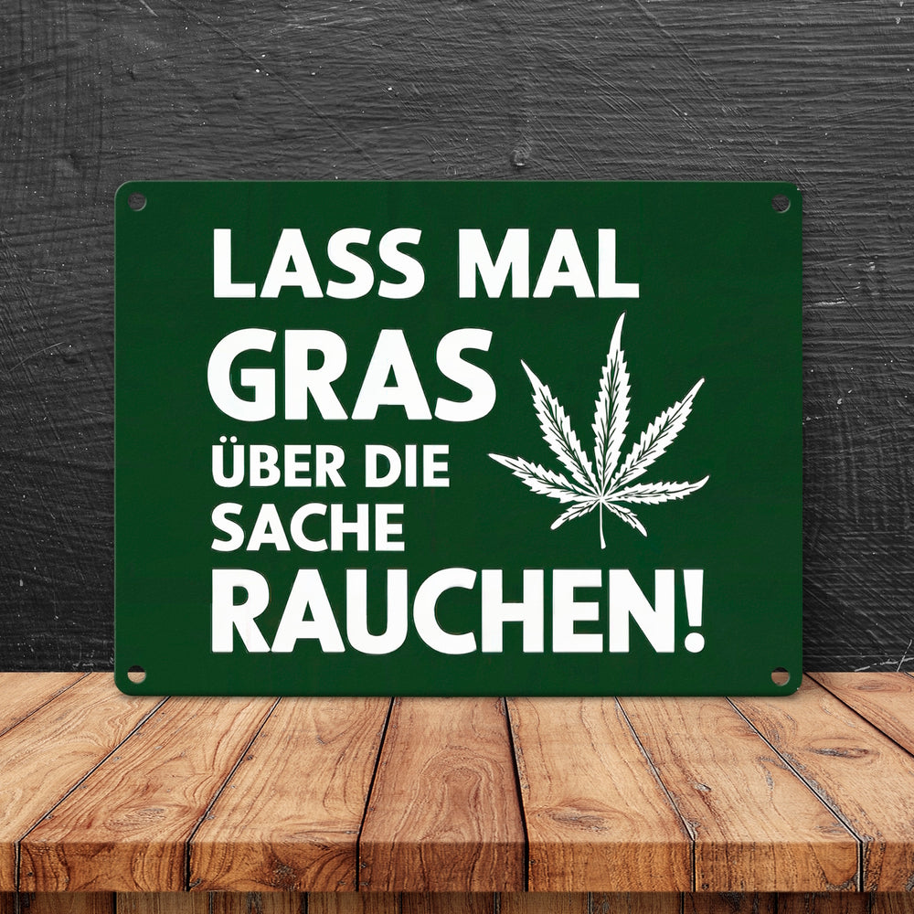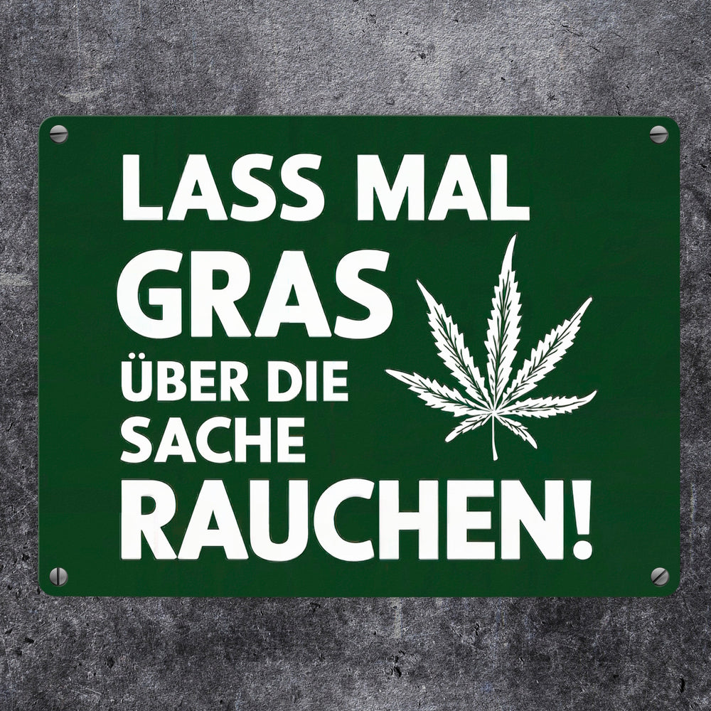 Lass mal Gras rauchen Metallschild in 15x20 cm mit Cannabisblatt