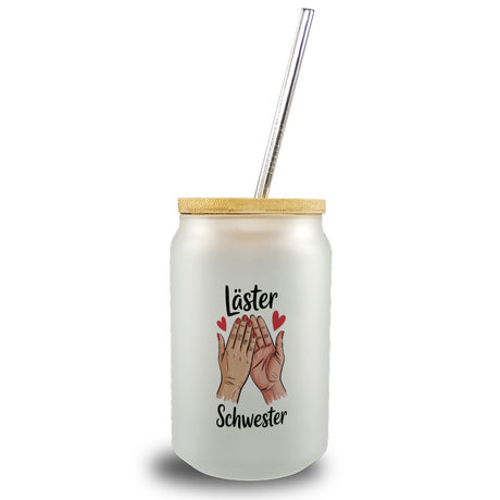 Läster Schwester Trinkglas mit Bambusdeckel für die beste Freundin