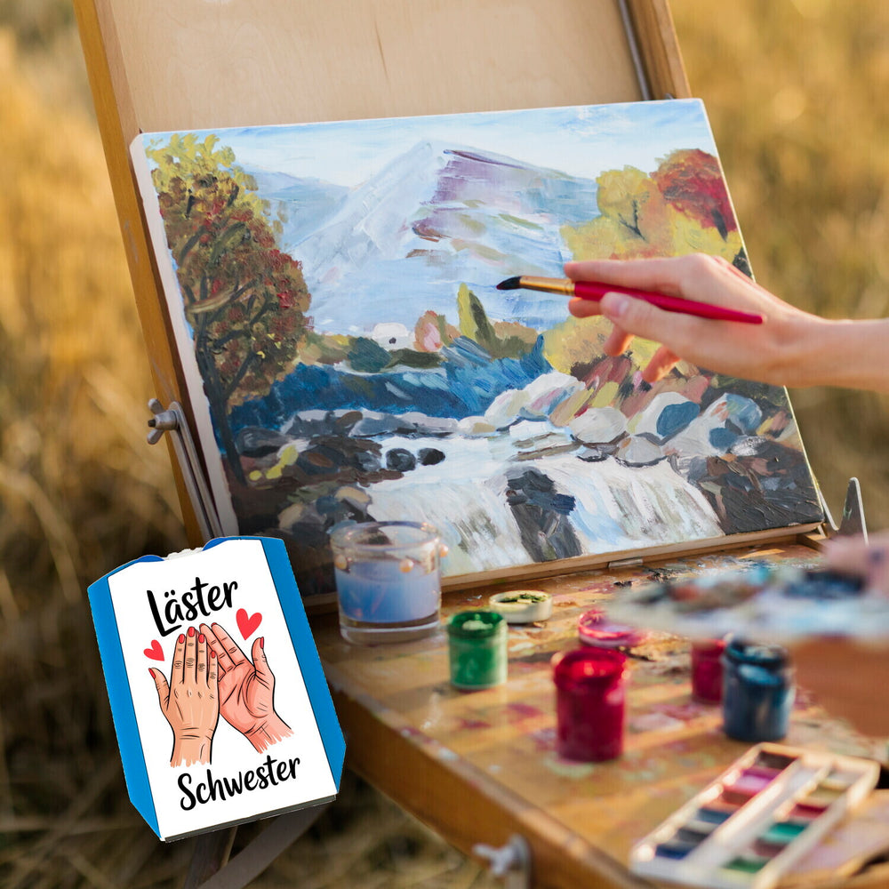 - Diese Parkscheibe ist ein echter Hingucker! Die Illustration zeigt zwei Frauenhände mit glänzendem, rotem Nagellack, die sich freudig abklatschen. Darüber steht "Läster" in cooler handschriftlicher Schrift, darunter "Schwester" in moderner Schrift. Zwei rote Herzen und ein subtiler Aquarell-Look runden das Design ab, perfekt für die beste Freundin!