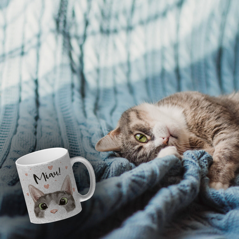 - 1x Miau Katze Kaffeebecher in der gewählten Ausführung