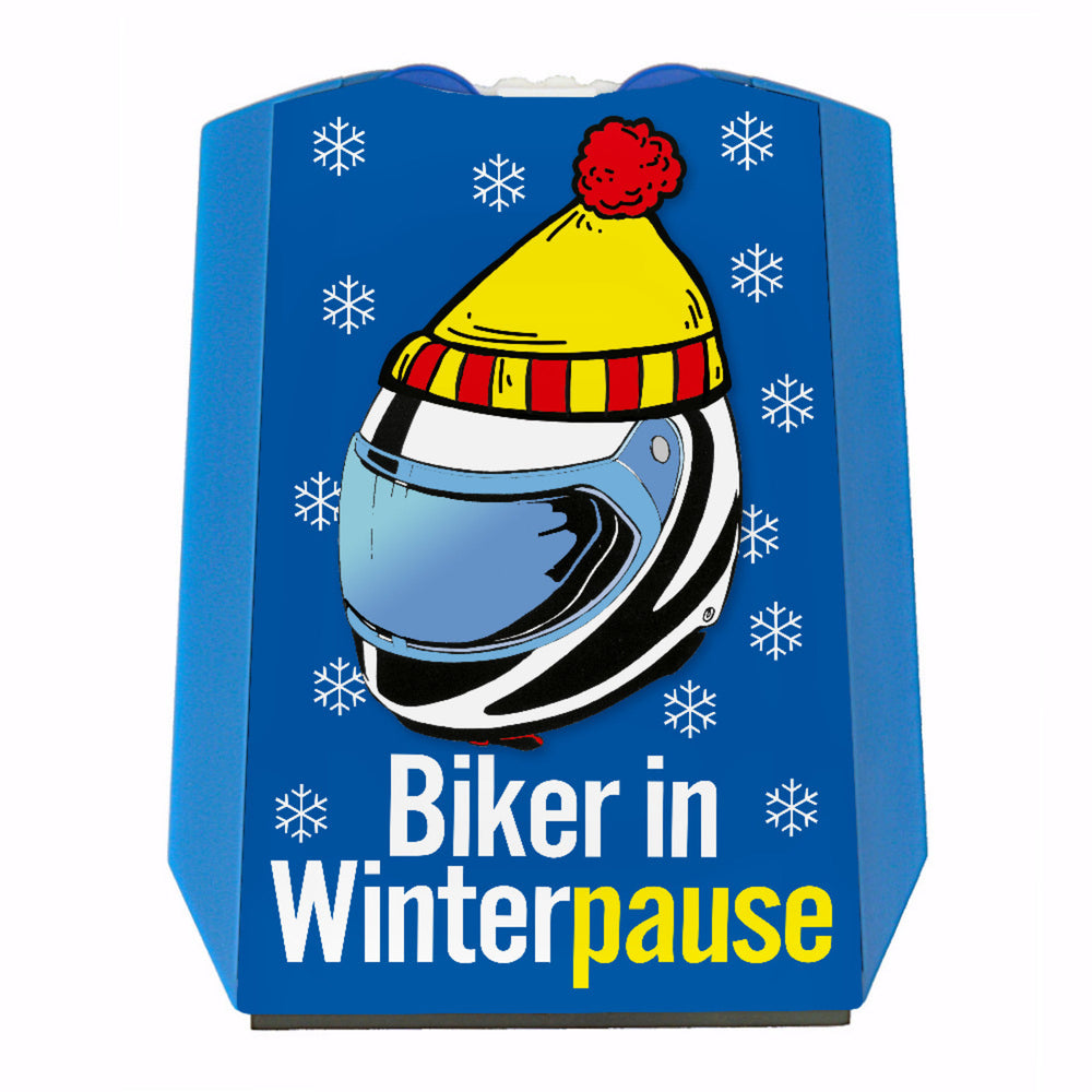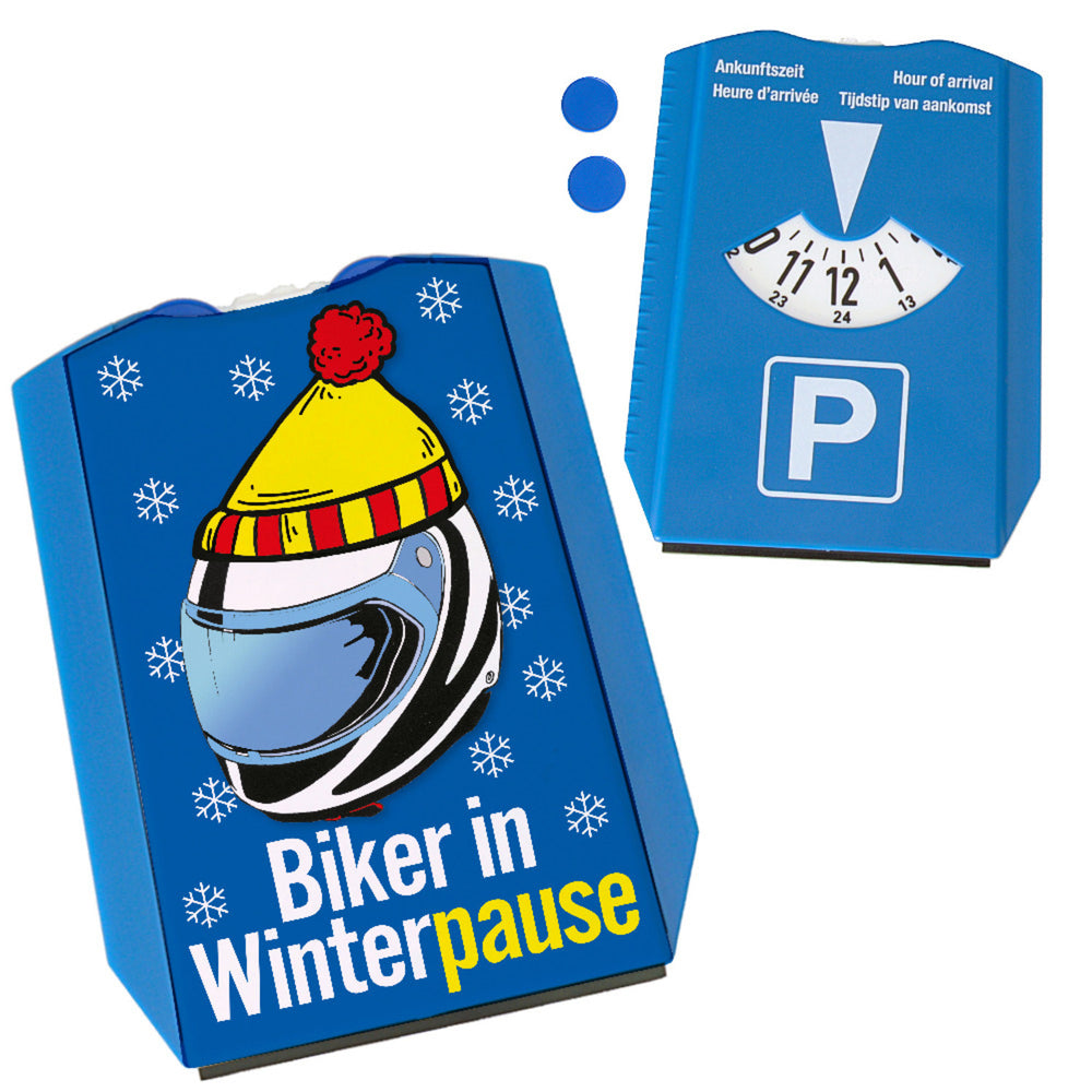 Parkscheibe zum Thema Motorradfahren mit Spruch Biker in Winterpause