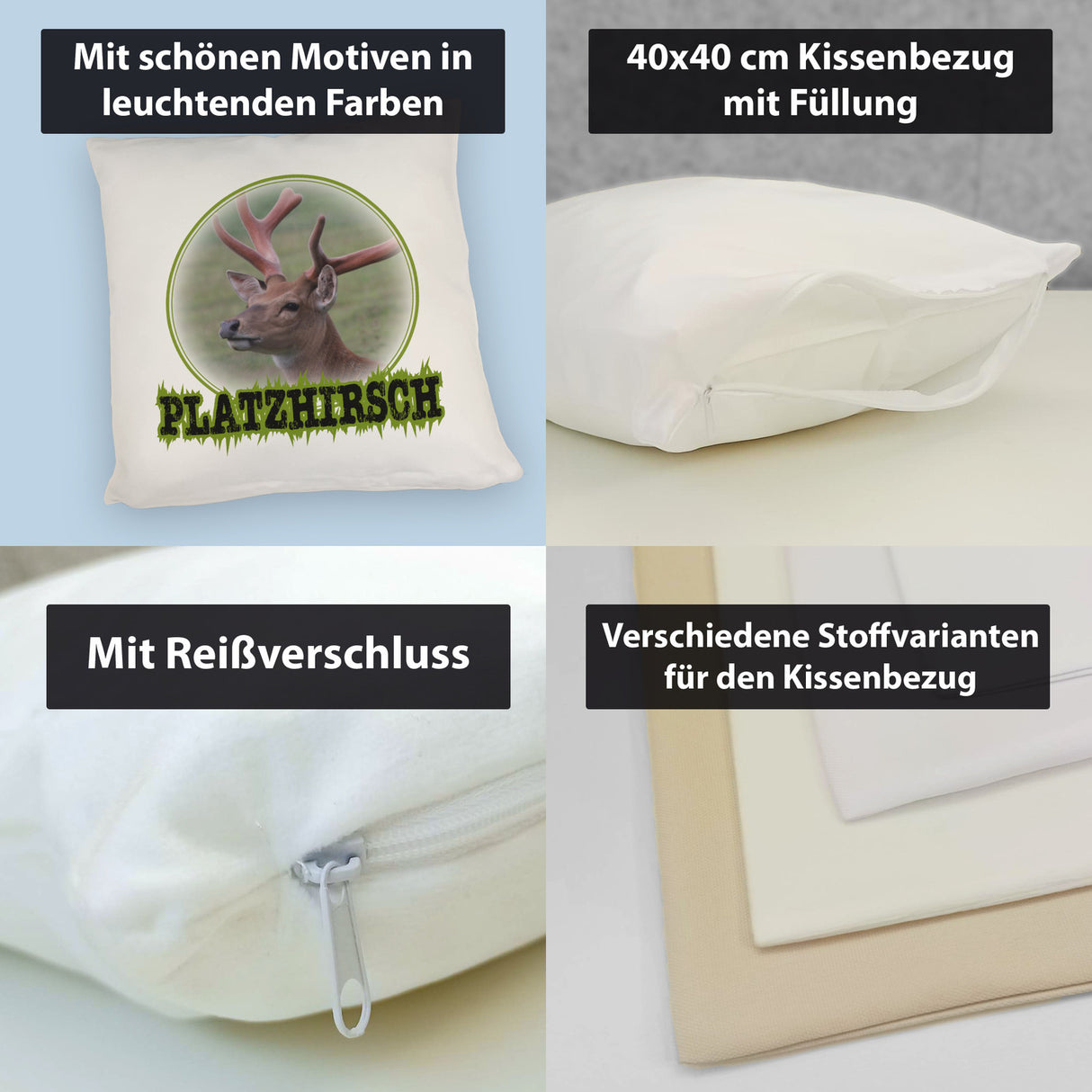 - 1x Platzhirsch Kissen mit Hirsch Motiv in der gewählten Ausführung