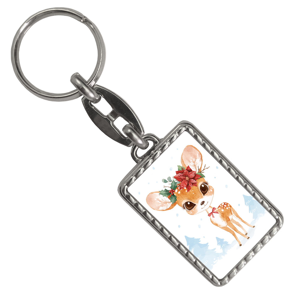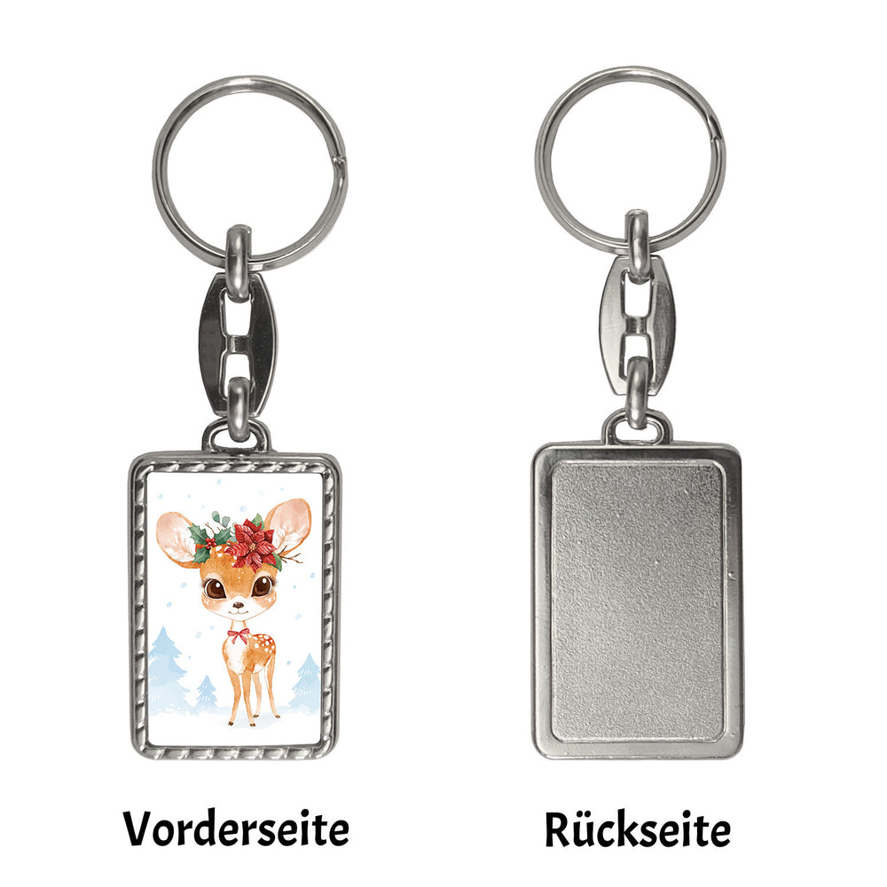 • Das niedliche Rehkitz auf dem Schlüsselanhänger schaut dich mit großen Augen an und trägt stolz seinen weihnachtlichen Kopfschmuck. Die winterliche Landschaft im Hintergrund lässt dein Herz höher schlagen. Dieser Schlüsselanhänger ist nicht nur ein nützlicher Begleiter, sondern auch ein echter Hingucker.