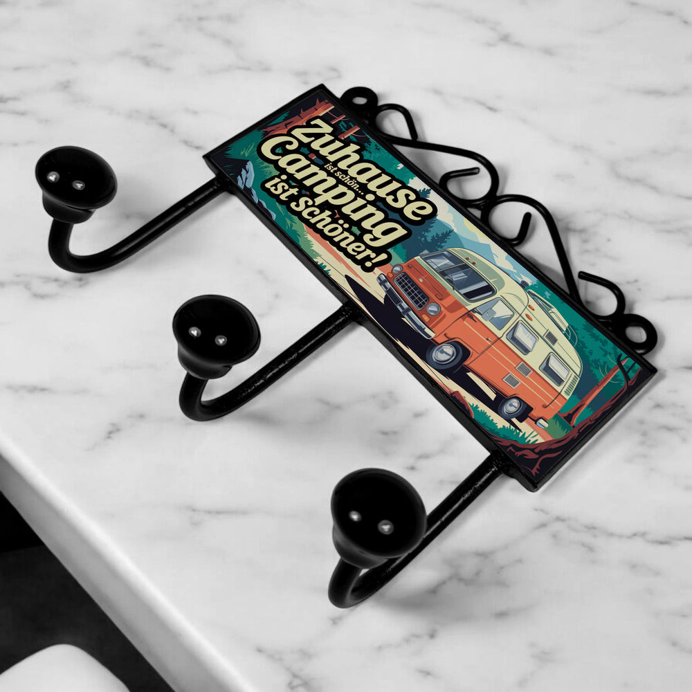 - Hol dir ein Stück Natur in dein Zuhause und zeige deine Campingliebe mit Stolz! Diese mit Liebe designte und bedruckte Kleiderhakenleiste verbindet Retro-Charme mit hochwertiger Verarbeitung. Bringe deine Wohnmobilfaszination auch in den kleinsten Raum – kümmere dich um dein Zuhause, während du das nächste Abenteuer planst!
