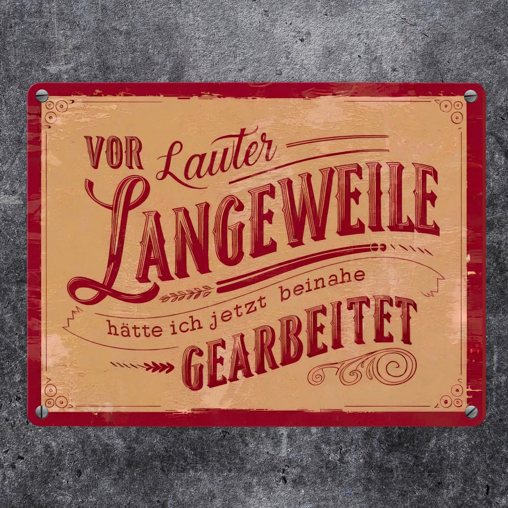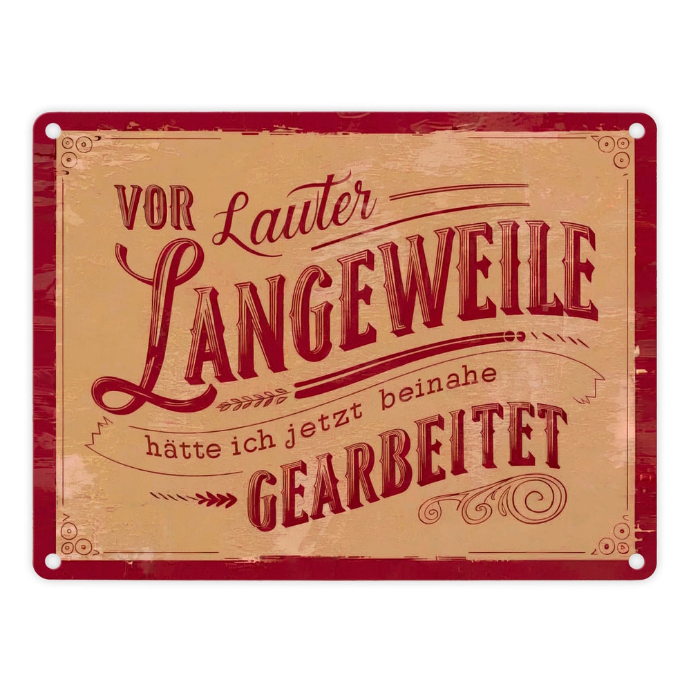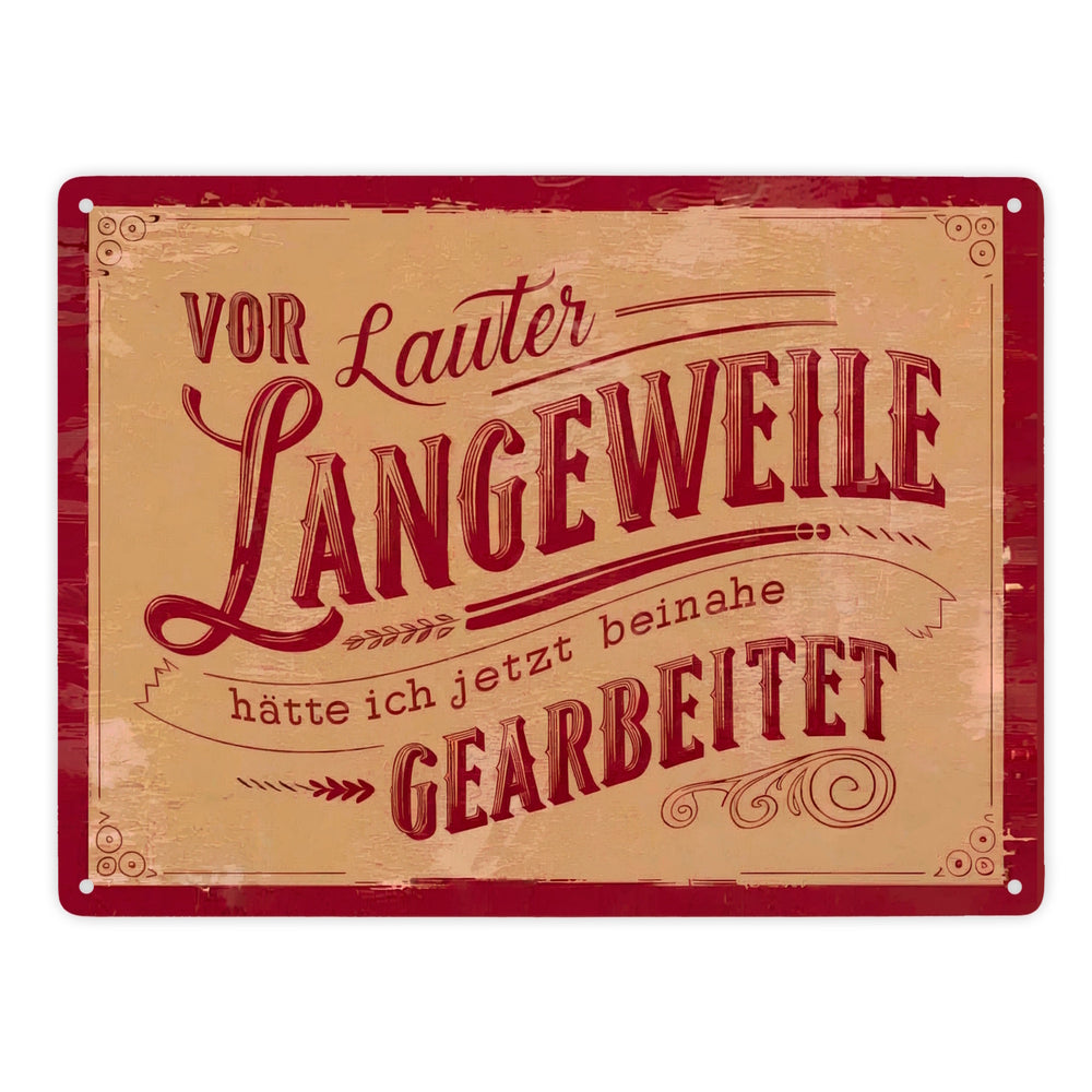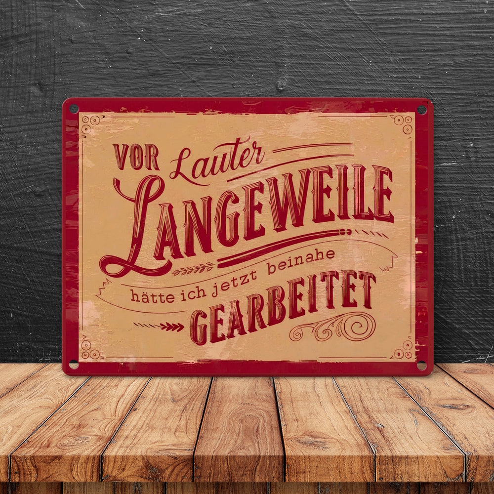 - 1x Vor lauter Langeweile beinahe gearbeitet Metallschild in 15x20 cm in der gewählten Größe