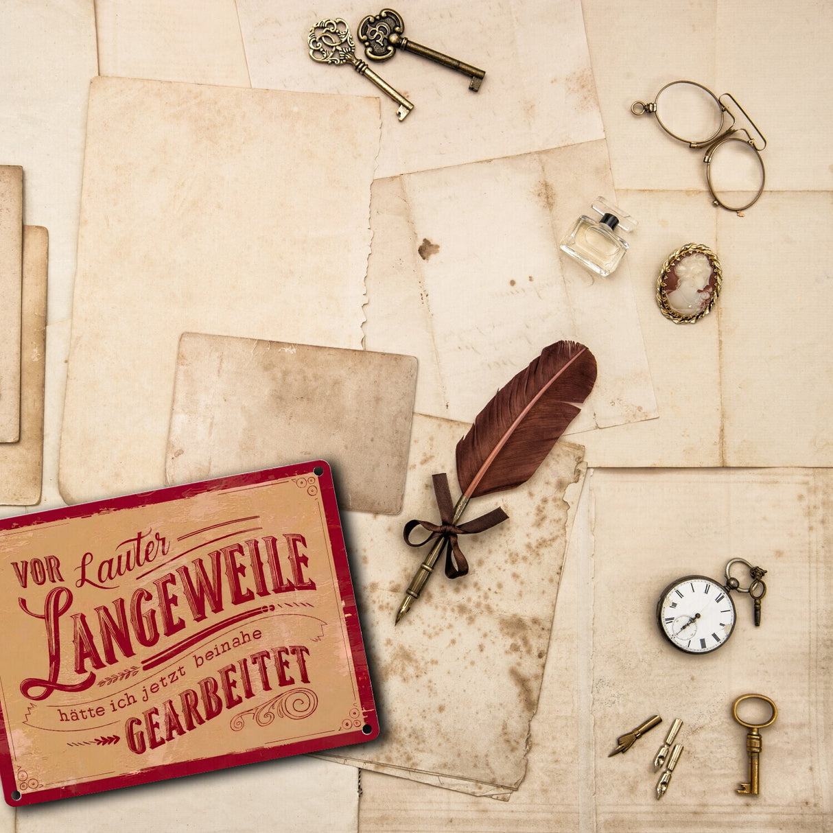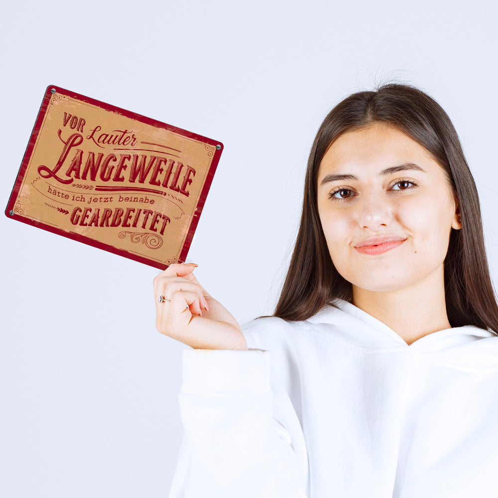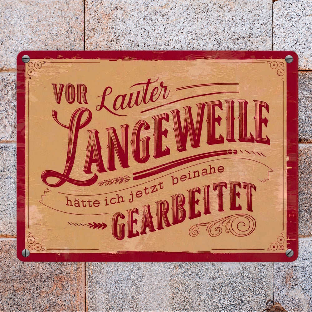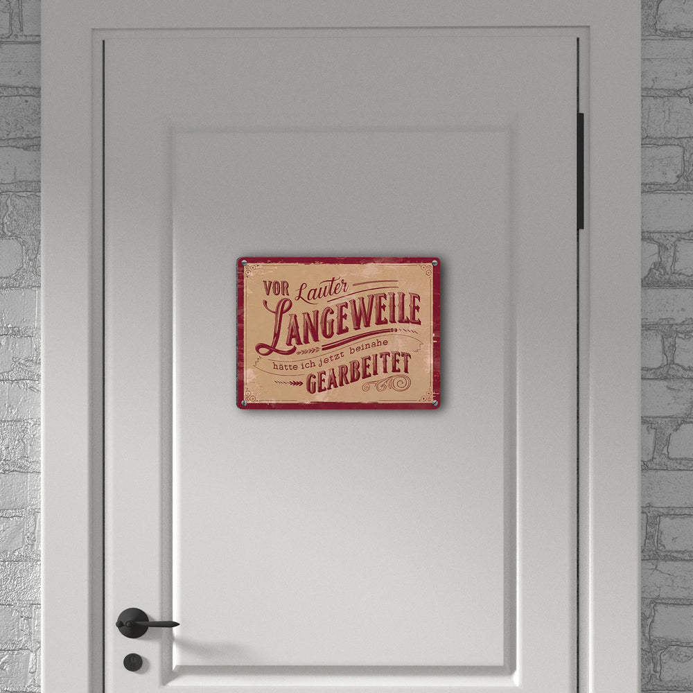 - 1x Vor lauter Langeweile beinahe gearbeitet Metallschild in 15x20 cm in der gewählten Größe