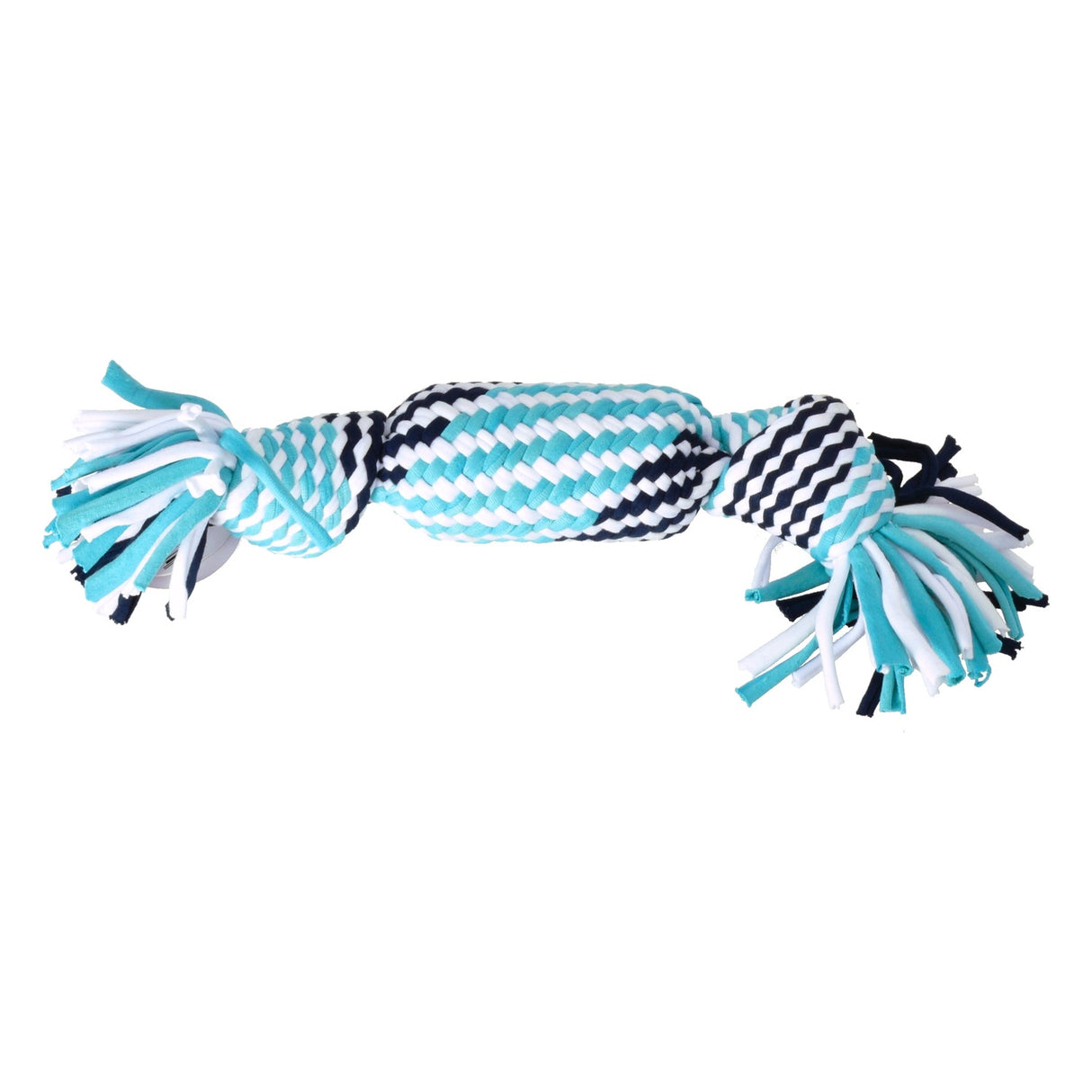 Dieses Wurftau Hundespielzeug ist eine tolle Abwechslung für deinen Vierbeiner. Es ist in weiß-blau gestaltet und hat einen quietschenden Ball in der Mitte, der deinem Hund jede Menge Spaß bereitet. Das robuste Polyestermaterial sorgt dafür, dass das Spielzeug lange hält. Aufgrund seiner Größe von ca. 34cm x 5,5cm x 5,5 cm kann es auch leicht transportiert werden. Für Frauchen, Herrchen, Hundebesitzer und Tierliebhaber ist dieses Wurftau ideal geeignet! Dein Hund wird sicherlich begeistert sein!