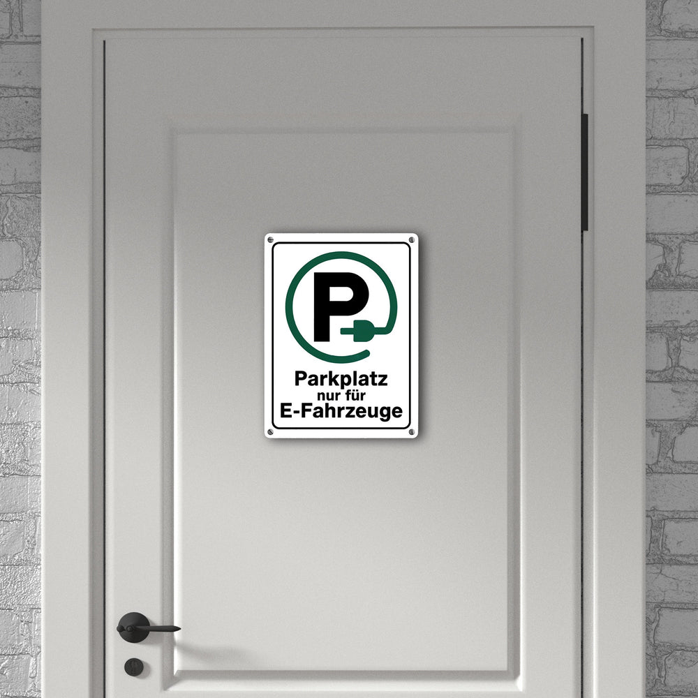 - 1x Metallschild in 15x20 cm Parkplatz nur für E-Fahrzeuge in der gewählten Größe