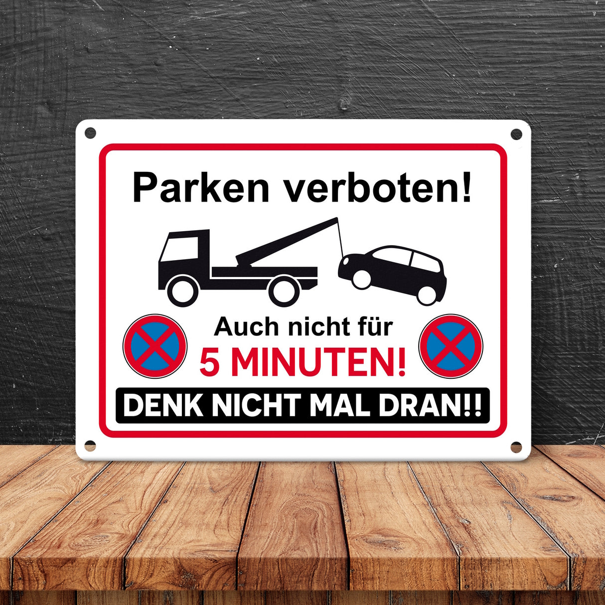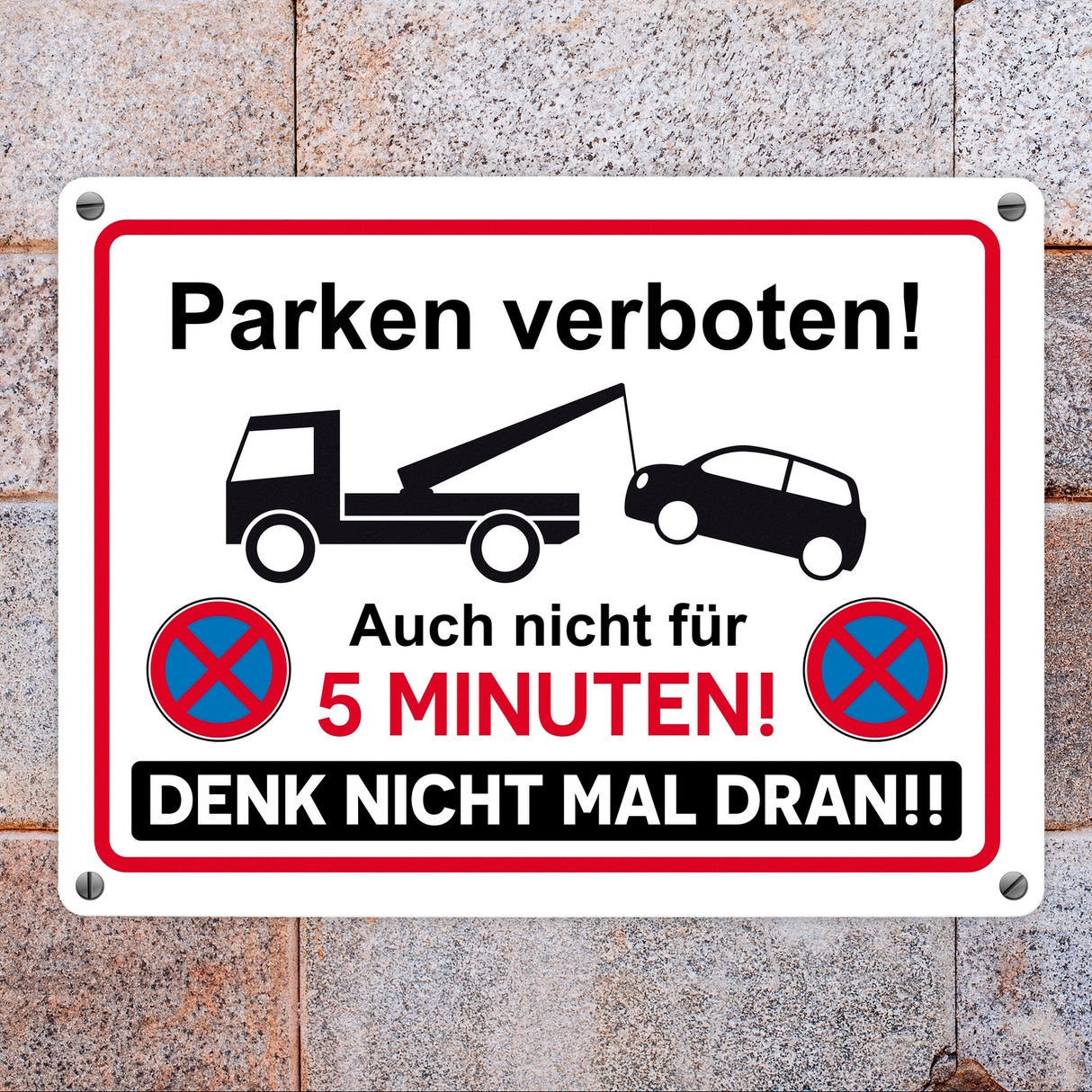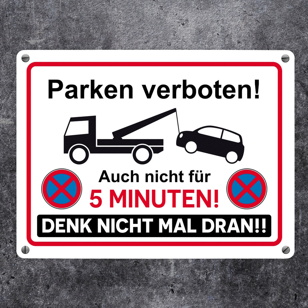 - 1x Parken verboten Metallschild mit lustigem Spruch in der gewählten Größe