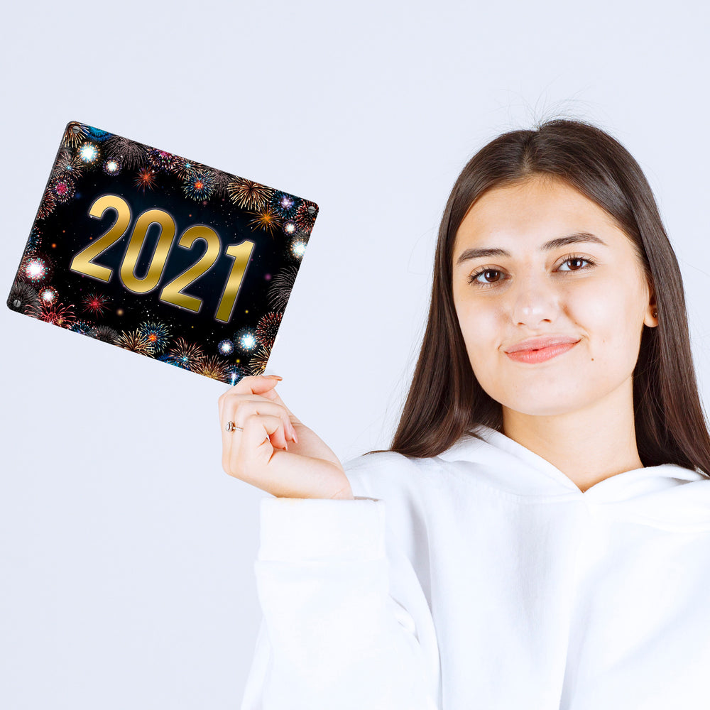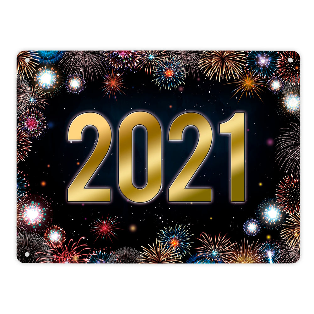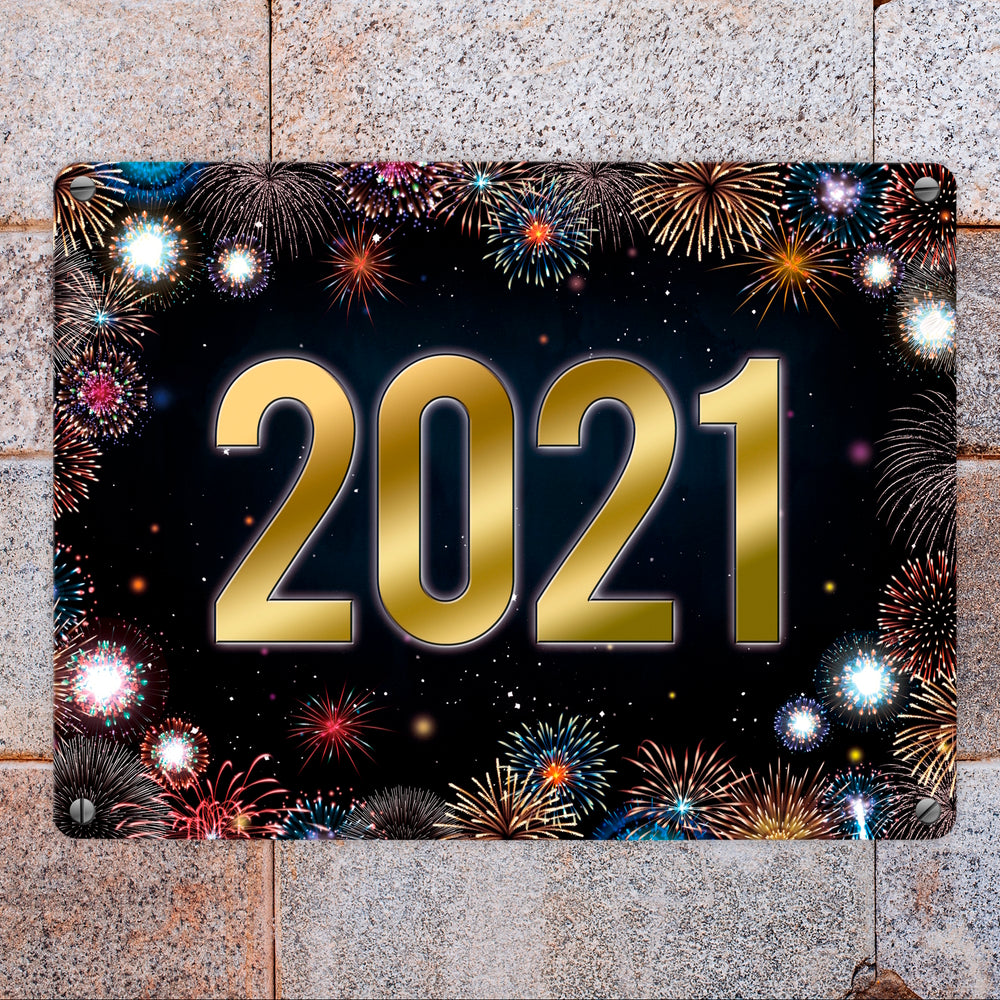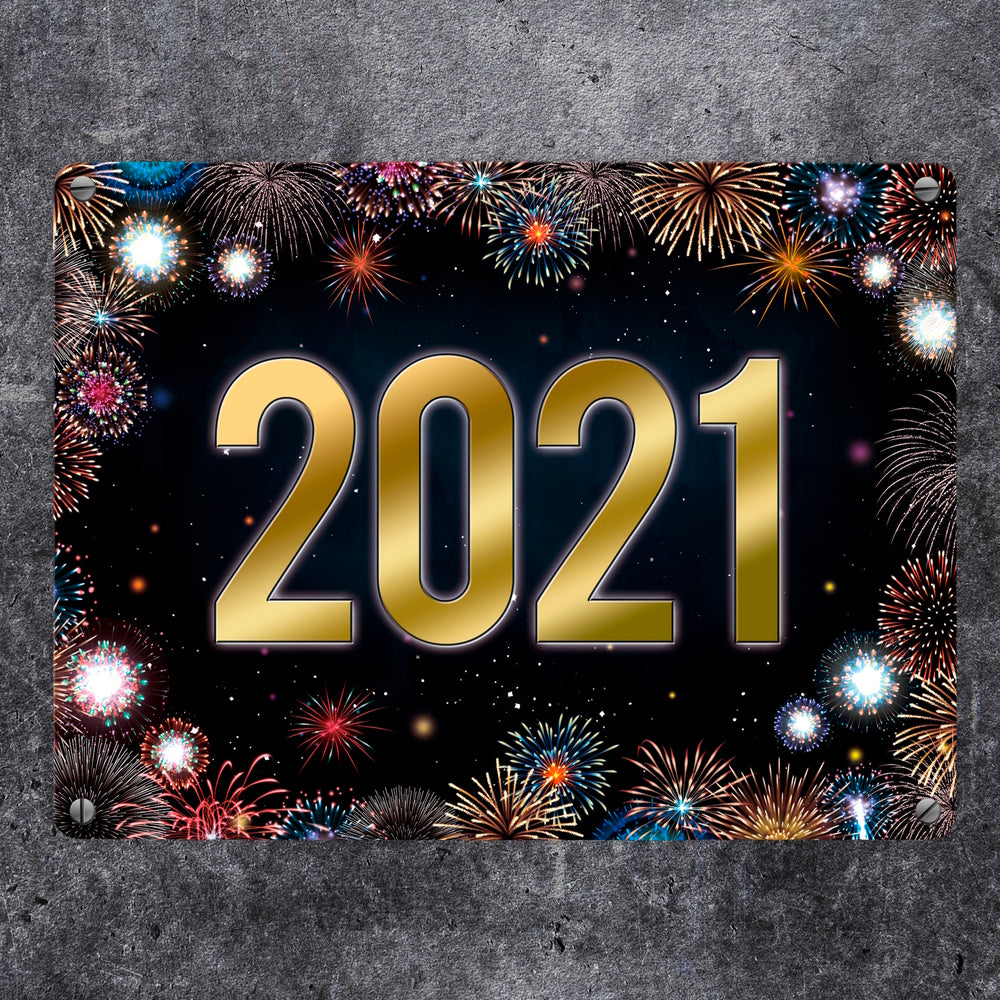 • 1x 2021 Silvester Metallschild mit Feuerwerk Motiv in der gewählten Größe