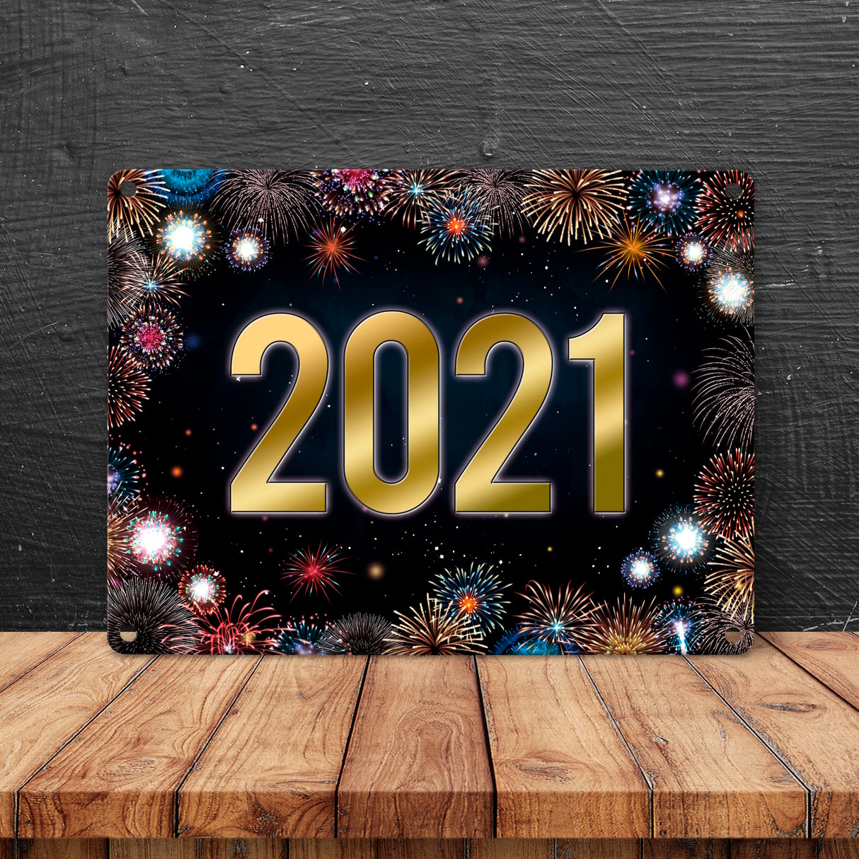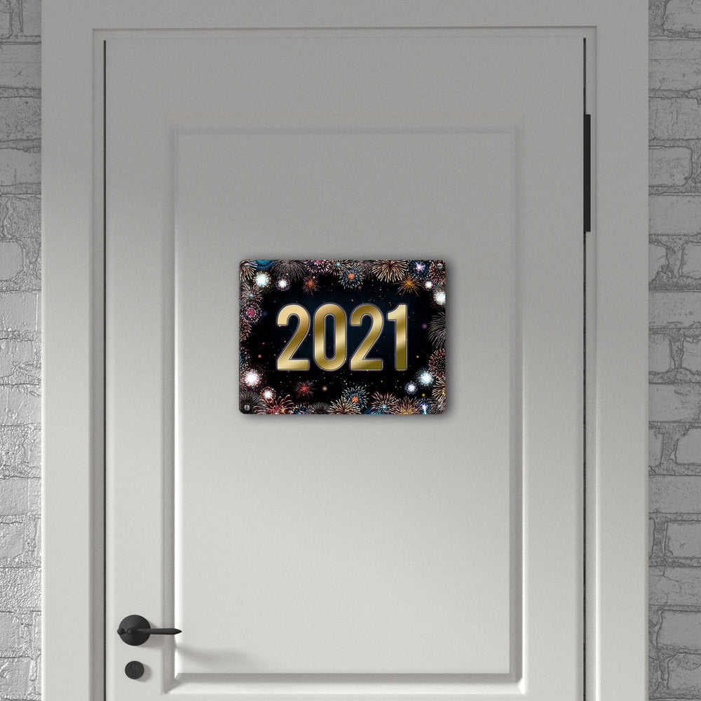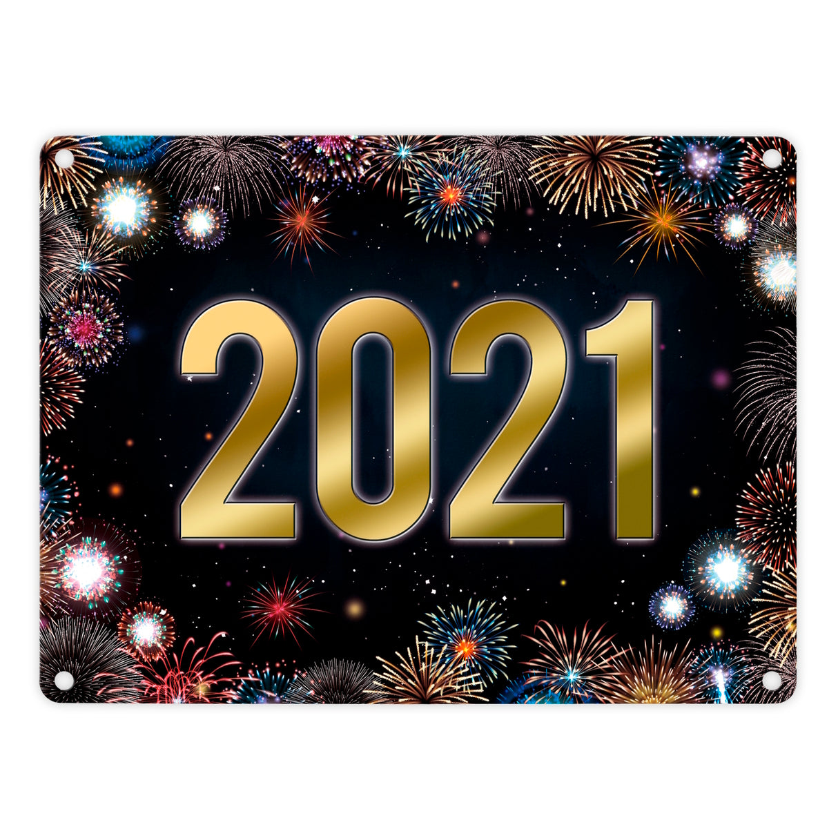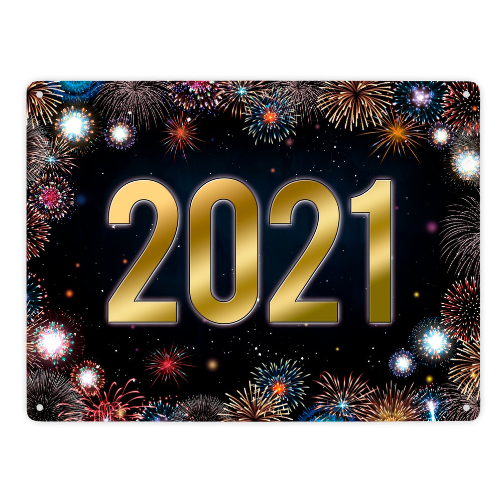 2021 Silvester Metallschild mit Feuerwerk Motiv