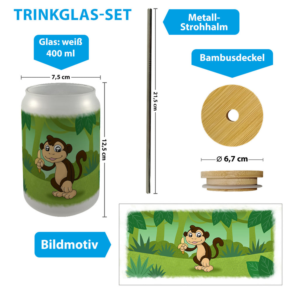 - Lieferumfang: 1x Affe im Dschungel Trinkglas mit Bambusdeckel