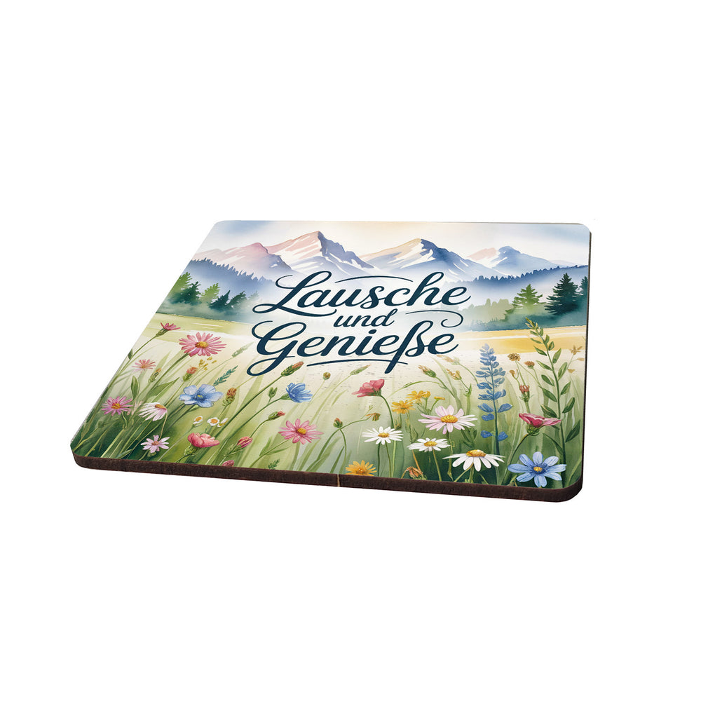 Allgäu Bergwiese 6er Set Untersetzer aus Holz - Lausche und genieße