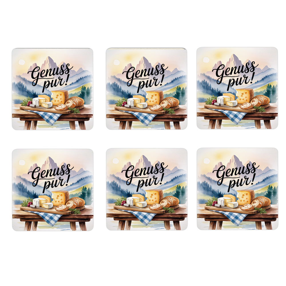 - Lieferumfang: 1x Allgäu Käsebrett 6er Set Untersetzer aus Holz - Genuss pur!