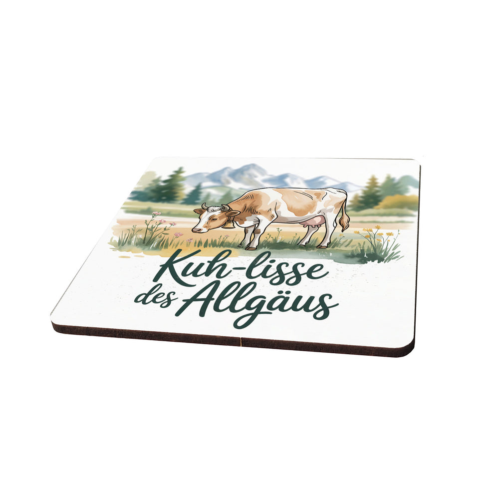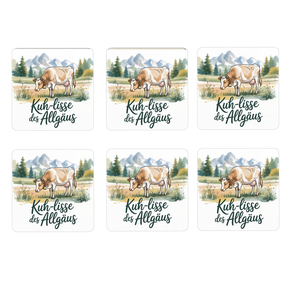 Allgäu Kuh mit Glocke 6er Set Untersetzer aus Holz - Kuh-lisse des Allgäus