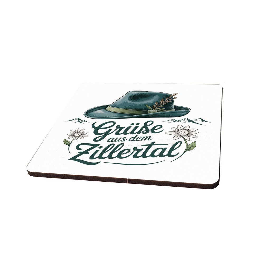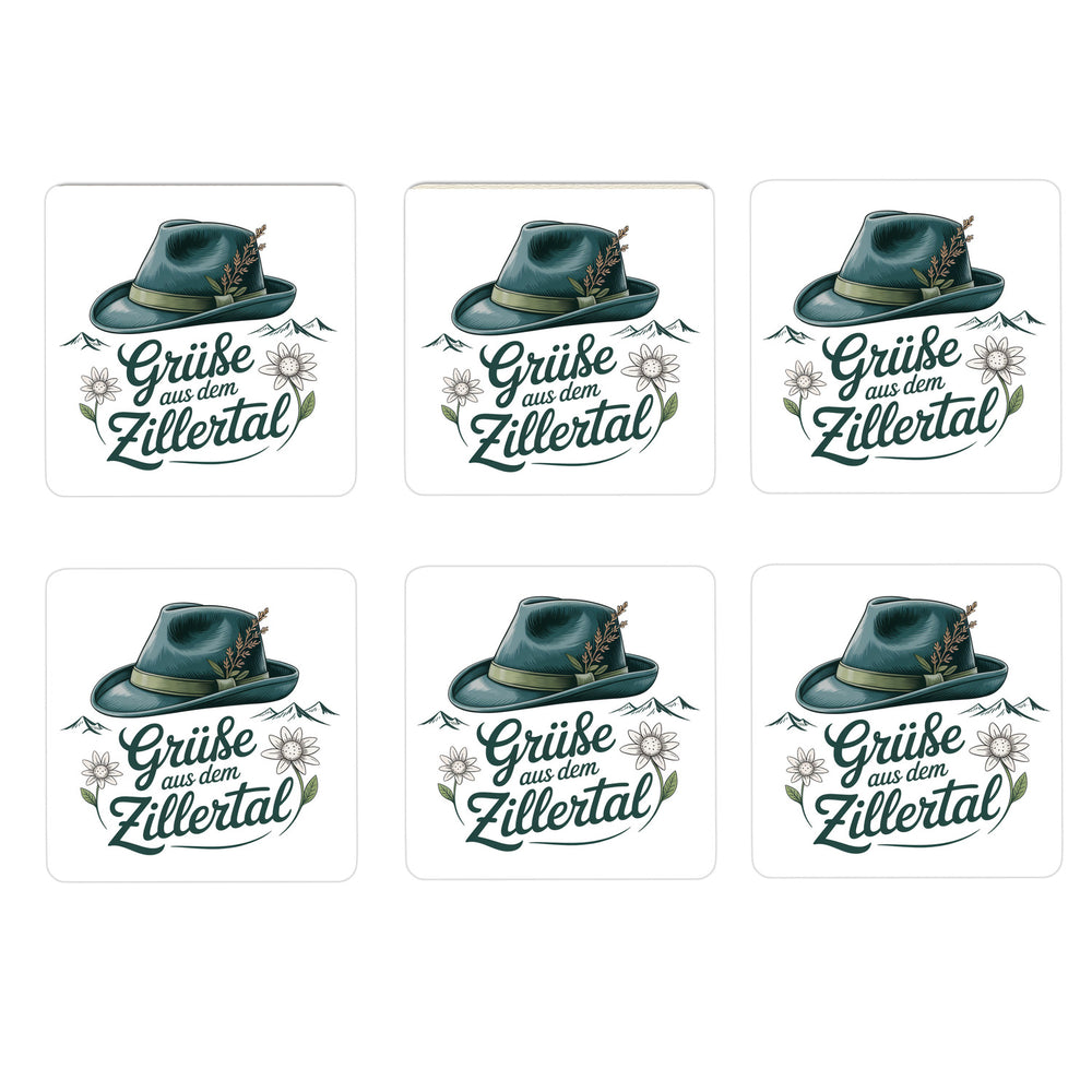 Alpenhut Grüße aus dem Zillertal 6er Set Untersetzer aus Holz